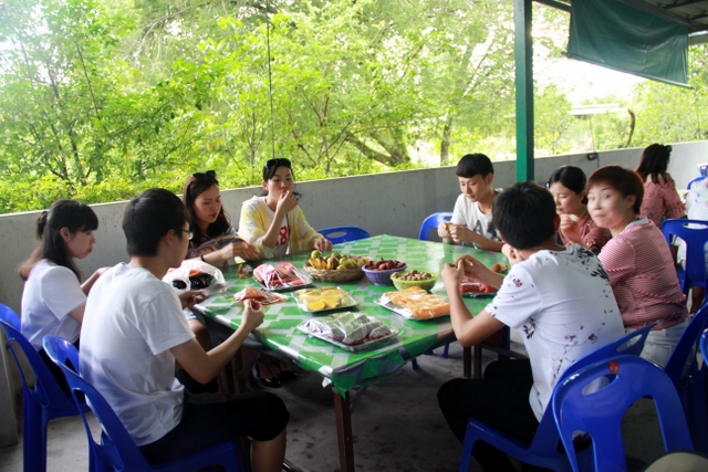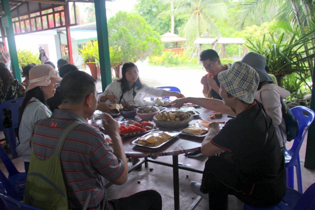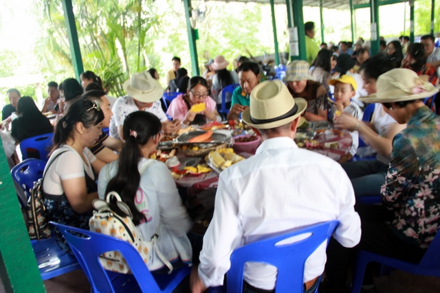 今天旅游的第二站是椰林乡村俱乐部。老师们在这里可以钓鳄鱼,骑大象,坐马车,海吃水果。榴莲,香蕉,芒果,凤梨,柚,西瓜,木瓜,椰子,菠萝,菠萝蜜,以及季节性水果荔枝,龙眼,山竹,红毛丹,应有尽有,琳琅满目,让老师们大快朵颐。