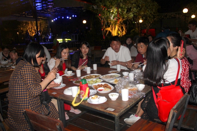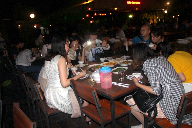 六点出发,向曼谷进发。在一家水上露天餐馆用晚餐,菜品丰盛。十点之前在曼谷住下,酒店在市中心,比昨晚住的还要豪华。