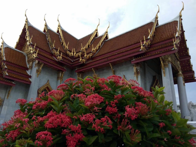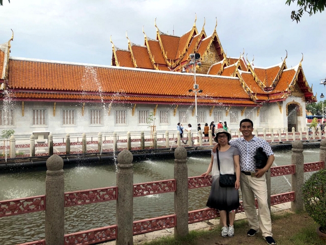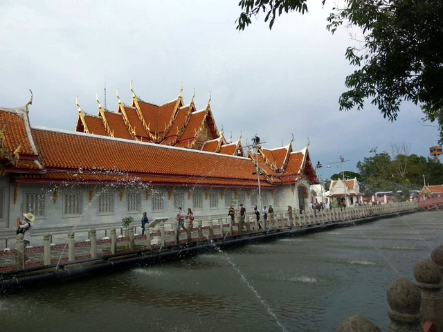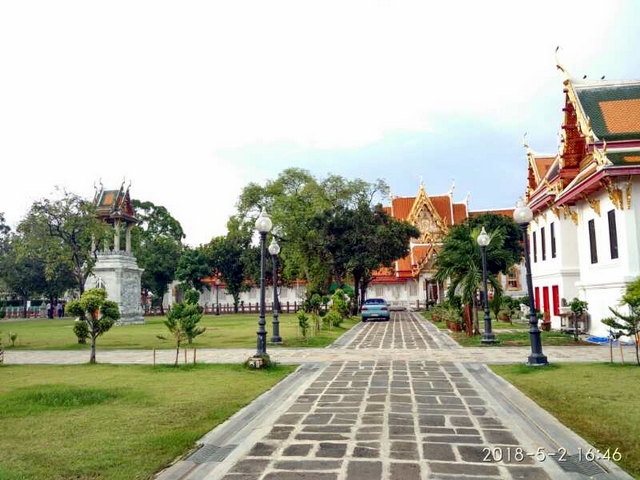 游完大皇宫和玉佛寺后,“屁屁”带着老师们游览大理石寺。这是曼谷王朝拉玛五世“出家”和安葬的地方,因用中国的大理石建筑而得名。