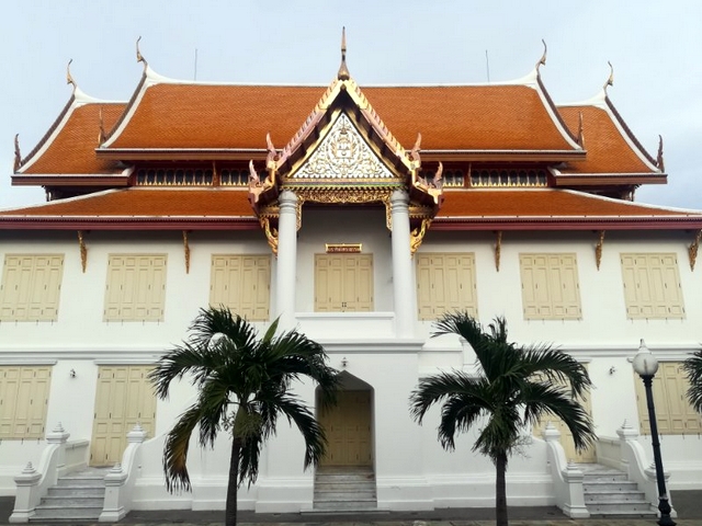 建于1784年的玉佛寺是泰国大皇宫的一部分,位于大皇宫内东北角,是泰国最著名的佛寺,也是泰国三大国宝之一,也是泰国王族供奉玉佛像和举行宗教仪式的场所,因寺内供奉着被泰国视为国宝的玉佛像而得名。据说一次雷电击毁泰国北部一座废旧寺庙,玉佛得以显露出来,玉佛内有佛祖的舍利,因此被送进皇宫,从而修建玉佛寺。每当换季时节,泰国国王都亲自为玉佛更衣,以保国泰民安。每当泰国内阁更迭之际,新政府的全体阁员都要在玉佛寺向国王宣誓就职。每年5月农耕节时,国王要在这里举行宗教仪式,祈祷丰收。玉佛寺内的几块大瓷屏风上彩绘着中国《三国演义》的故事。