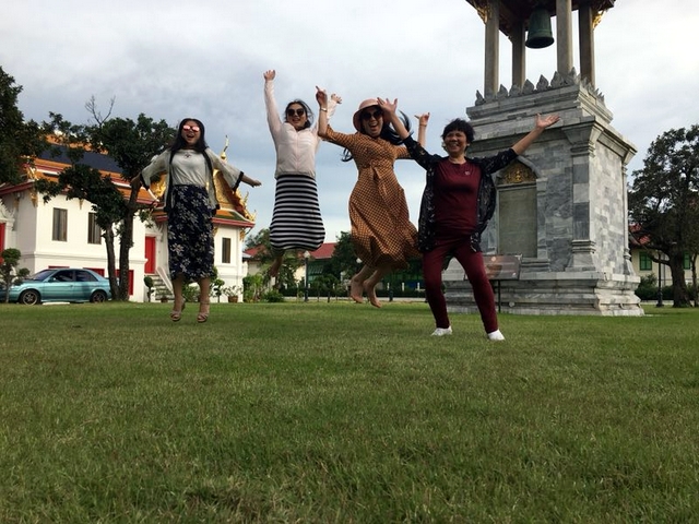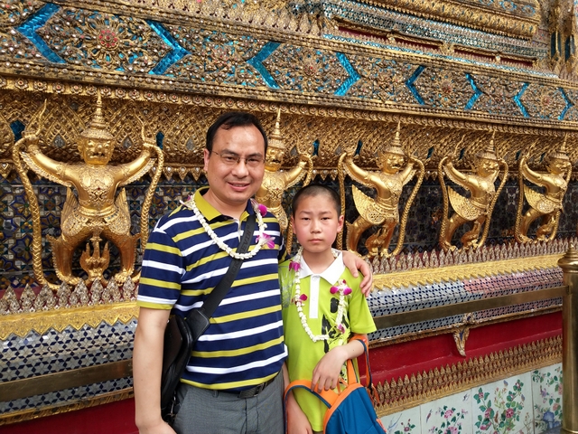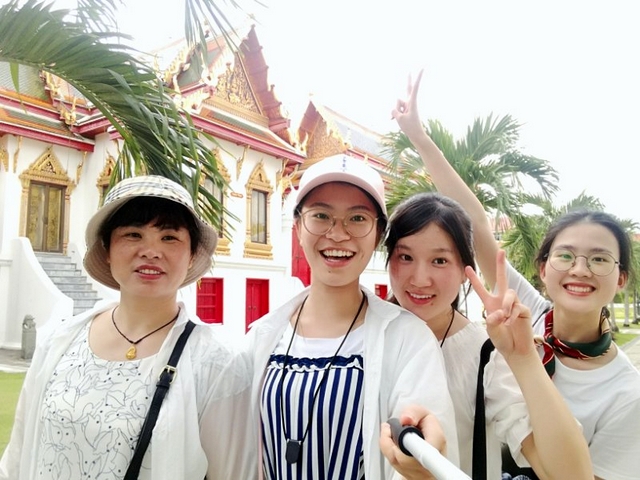 曼谷是泰国政治、经济、文化中心和现代与传统相交融的大都市,依然保留着标志辉煌传统的名胜古迹。金碧辉煌的大皇宫,镂金镶玉的玉佛寺,庄严静穆的大理寺等名胜古迹,深深吸引了老师们,使人流连忘返。