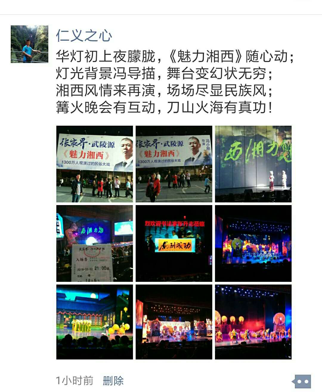 晚上,我们到魅力湘西剧院观看了经典的大型湘西民俗演出——《魅力湘西》。节目完美演绎了传说中的神秘湘西习俗,如湘西赶尸、土家哭嫁、鬼谷神功等,通过一系列民族音乐、舞蹈、声、光、电等形式呈现在我们面前,气势恢宏,动人心魄。