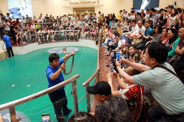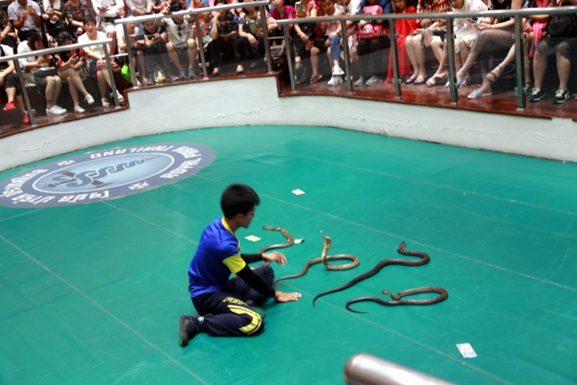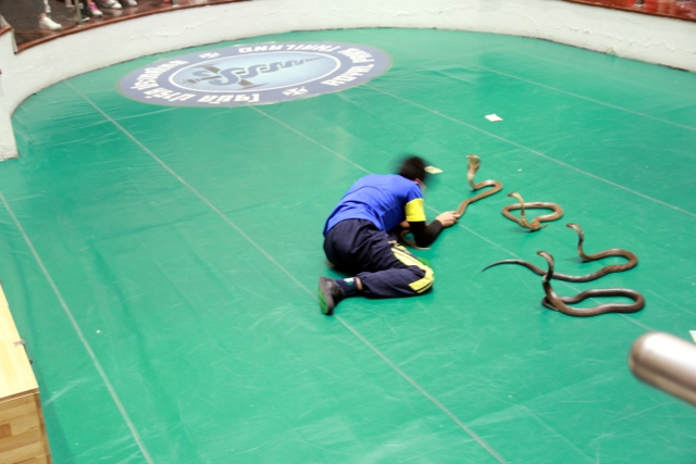 沿途进了两家购物店。先进国际珠宝钻石店,午饭后进毒蛇研究中心。据称泰国的珠宝钻石由皇室独家开采、加工与经营,绝无假货,皇室借此富可敌国;毒蛇研究中心在全世界仅两家,另一家在巴西。在毒蛇研究中心,观看眼镜蛇表演,参观毒蛇博物馆,里面以蛇毒制作的药品和其他各类药品琳琅满目。