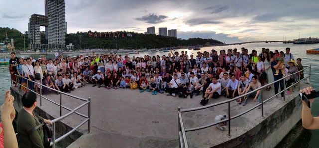 栈桥上,巧遇罗校长亲率的第二批赴泰旅游教师,临时改变既定安排,两批人马一块在栈桥上合影,“正源正源,勇往直前”的口号声响彻大海,气冲斗牛。