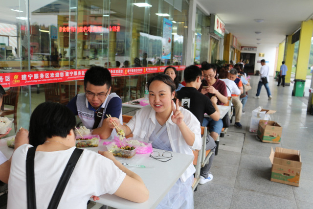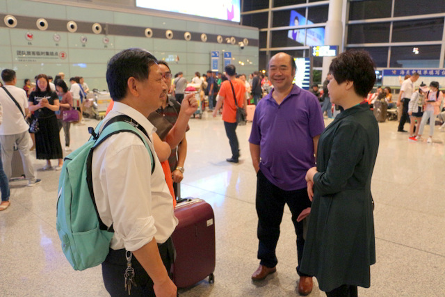 晚餐时间,教师团队分别在建宁服务区及长沙东服务区吃学校自备的正源盒饭,晚饭后稍作休息,继续前行。在长沙黄花机场进行行李安检托运时,在长沙休养的罗校长携夫人梁老师赶到机场与团队会合。罗校长热情的与现场老师握手交谈,随后吃到了他想念的正源盒饭,罗校长在镜头前竖起大拇指说道:正源盒饭天下无双。