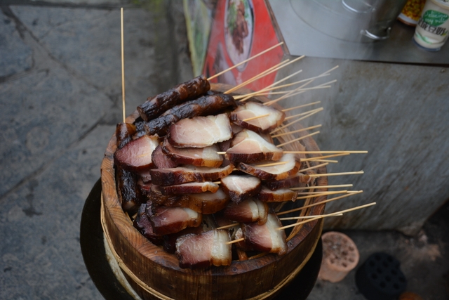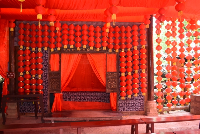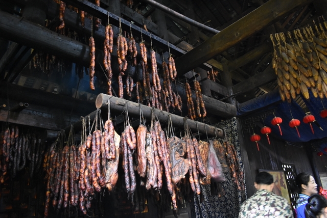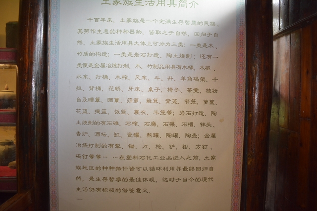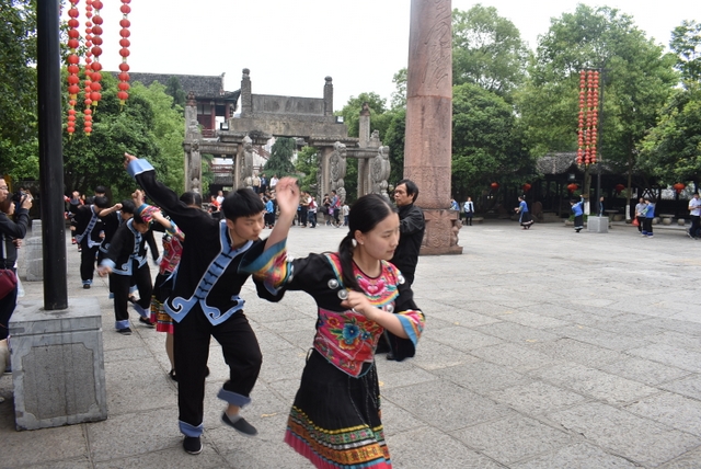 进门后,首先看到的是摆手堂,好几十个盛装的土家男男女女正围着圈跳摆手舞。摆手舞是土家族古老的传统舞蹈,列入中国第一批国家级非物质文化遗产名录。关于摆手舞的起源,有很多种说法,一说起源于祭祀,一说由白虎舞、巴渝舞演变发展而来,一说起源于战争,一说是纯粹自我娱乐的一种艺术活动。