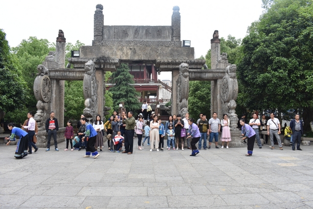 用过早餐后,老师们离开武陵源景区,驱车前往张家界市区。按照预定的计划,他们主要游览了土司城。
