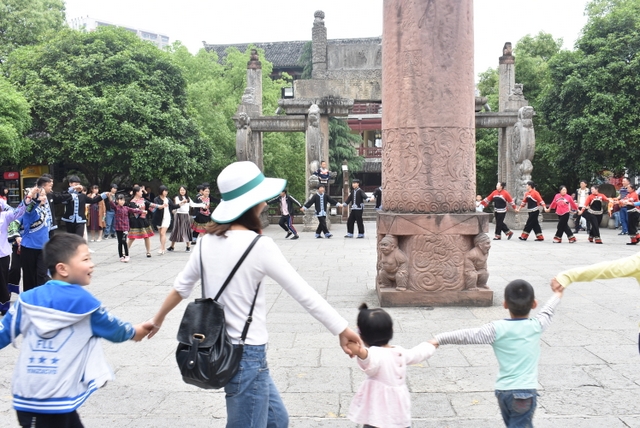 观看完摆手舞,老师们重点游览了土司城里的九重天世袭宫。