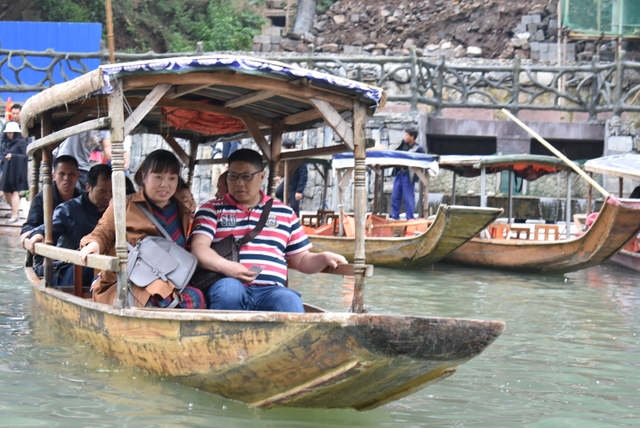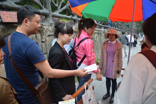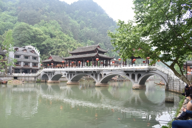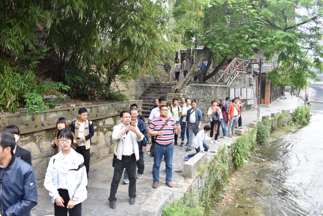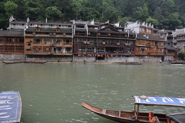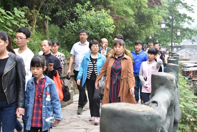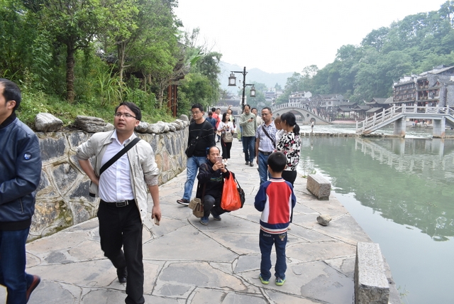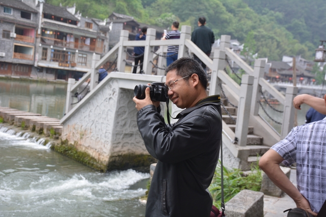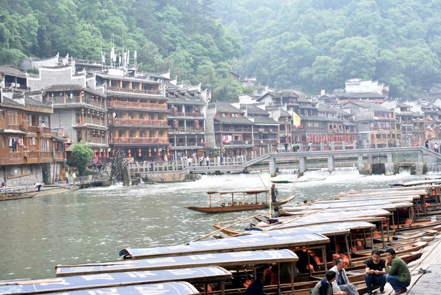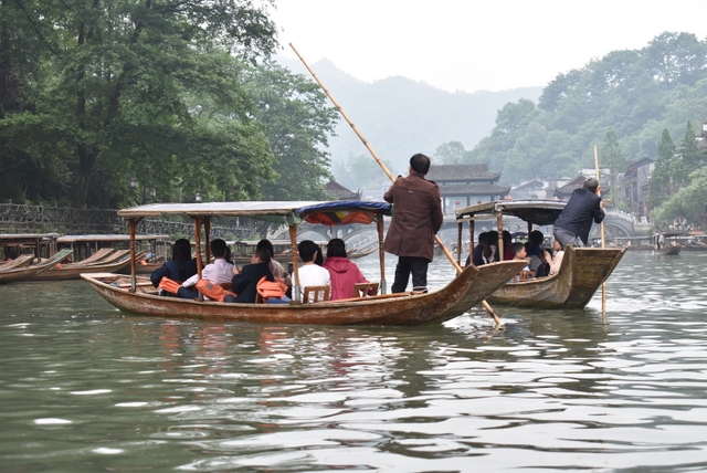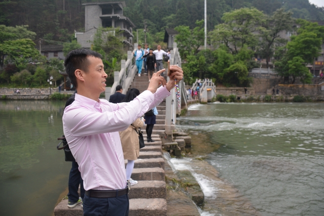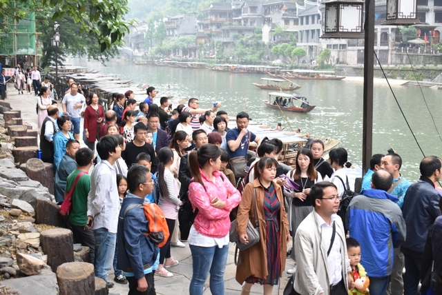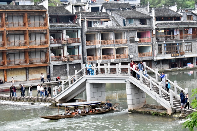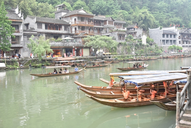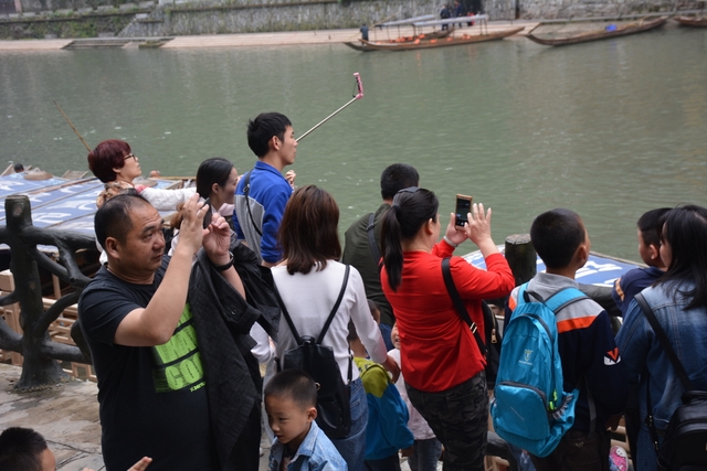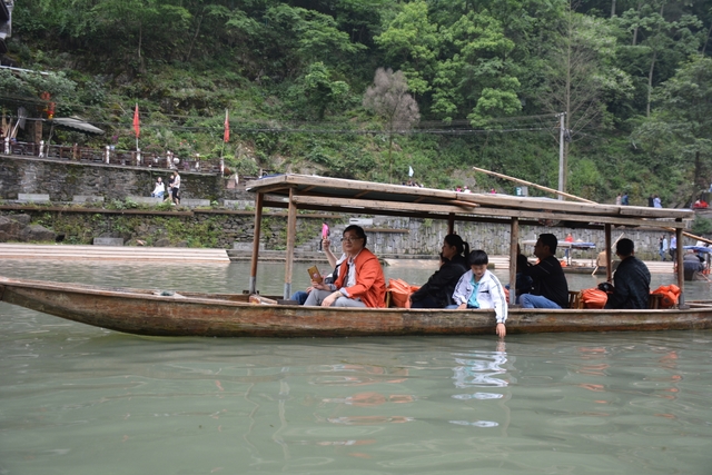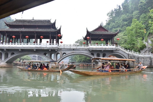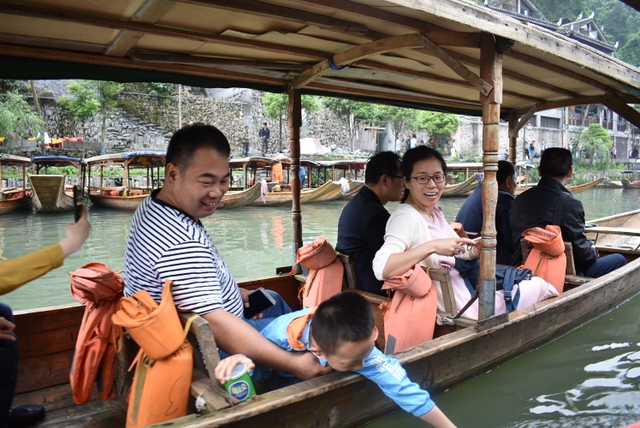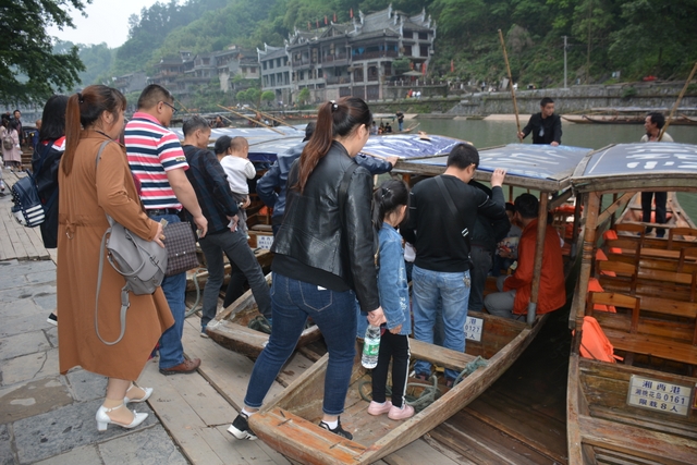 下午,这支一百多人的旅游队伍离开张家界到达凤凰,乘坐小木船游览了沱江。