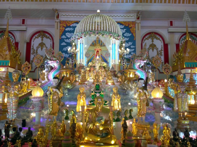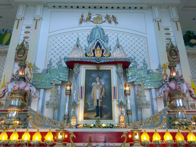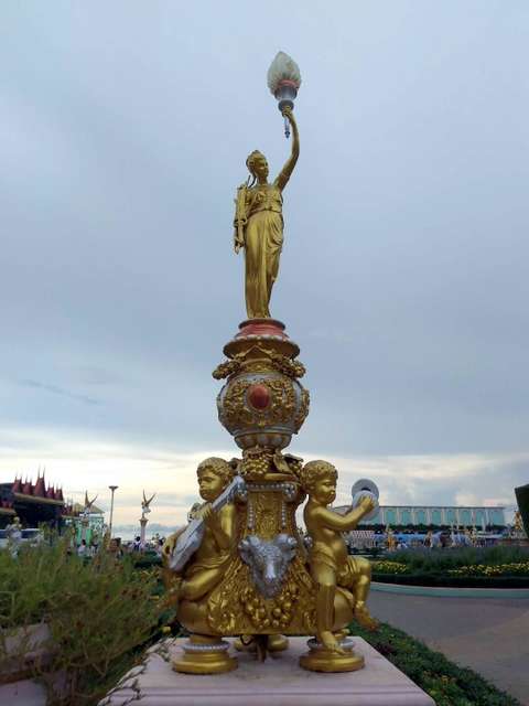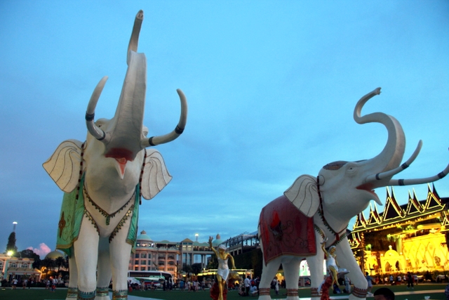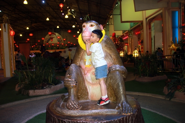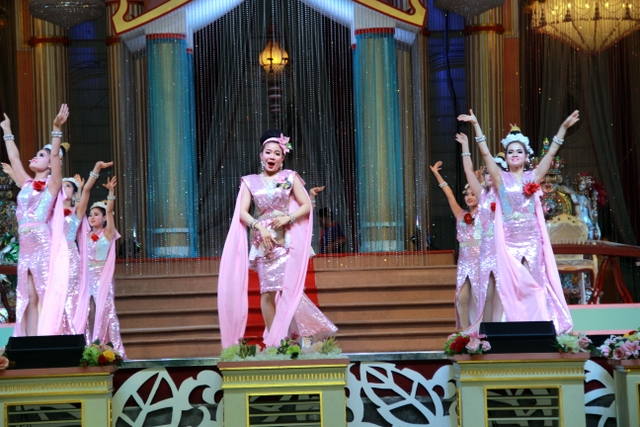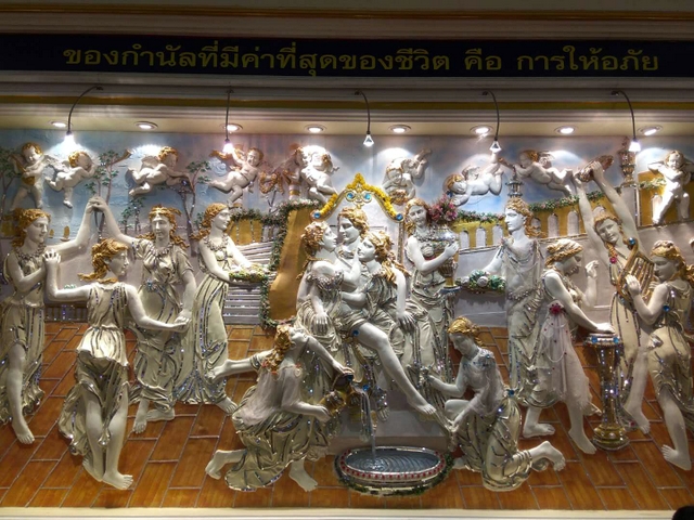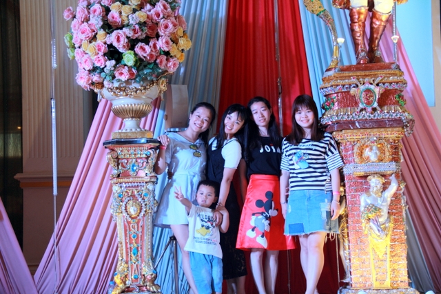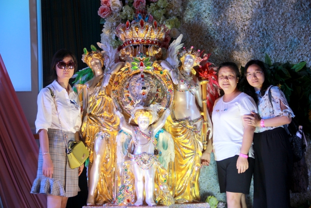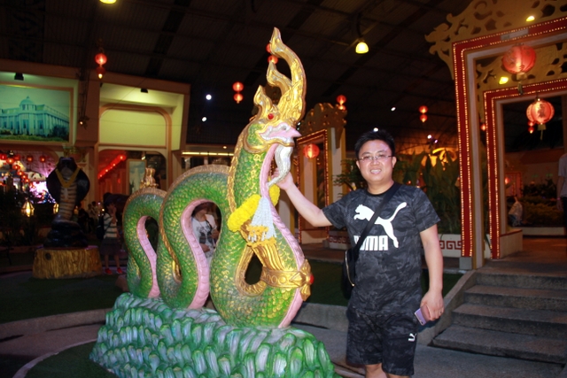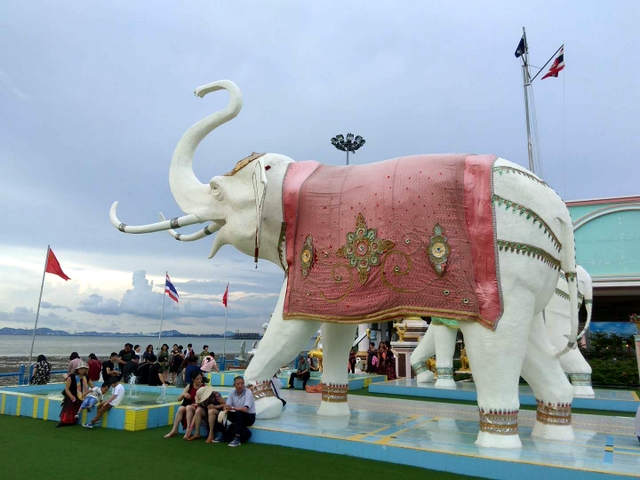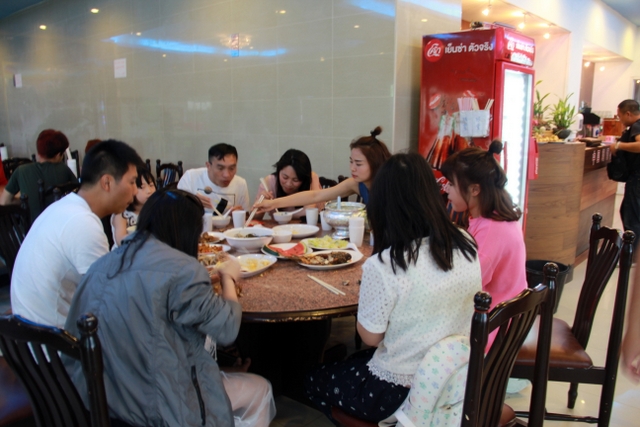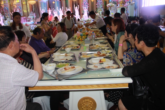 5月5日。阵雨。参拜四面佛;参观泰国蚕丝文化博物馆和乳胶中心;逛免税店。下午六点,两批人马会师芭提雅,在富贵黄金屋景区会合照大合影,进晚餐。