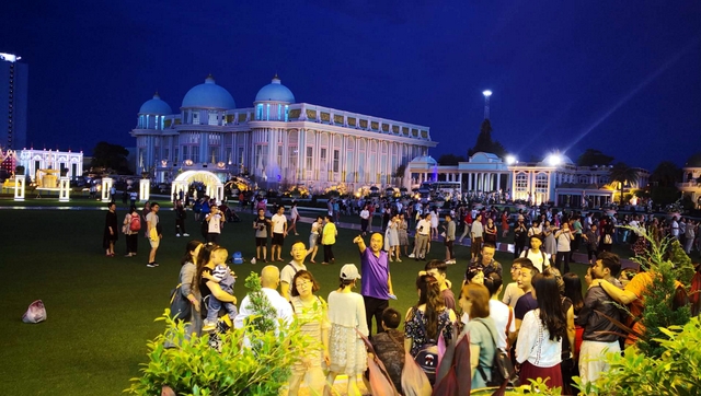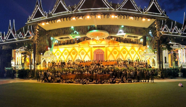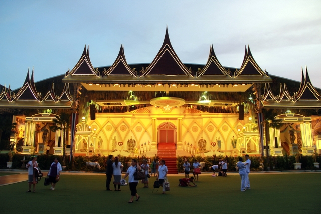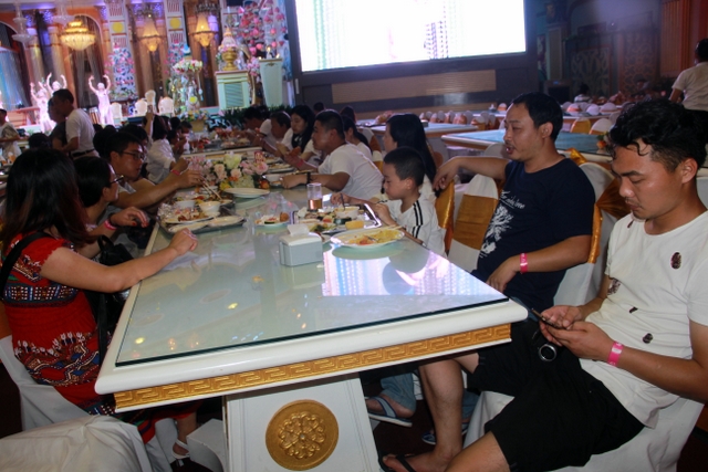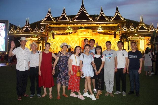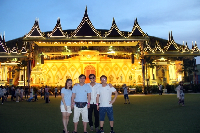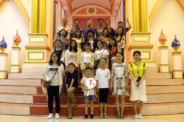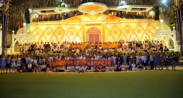 下午六点,两批人马312人分乘十辆大巴车,浩浩荡荡会师于芭提雅海边胜景“富贵黄金屋”,本来就川流不息的人群,因正源老师们一车接一车的鱼贯而来平添了一道亮丽的风景。在广场舞台大合影时,“正源正源,勇往直前”的口号声响遏流云,震撼了在这里观光的上万游客。