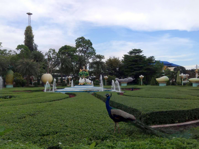 庄园由泰国民间首富谢国民花重金14亿泰铢建造。大堂里供着崇拜图腾“金鸡”,正应了庄园主人、泰国华裔商人、养鸡大王——谢国民的身份。谢国民是正大国际集团董事长,据导游介绍,全泰国百分之七十的鸡、蛋出自他的公司。全泰国几千家711连锁店,他站股51%。已故中国高层领导人曾邀他到中国投资成立正大集团,为中国的改革开放和经济发展做出了积极贡献。