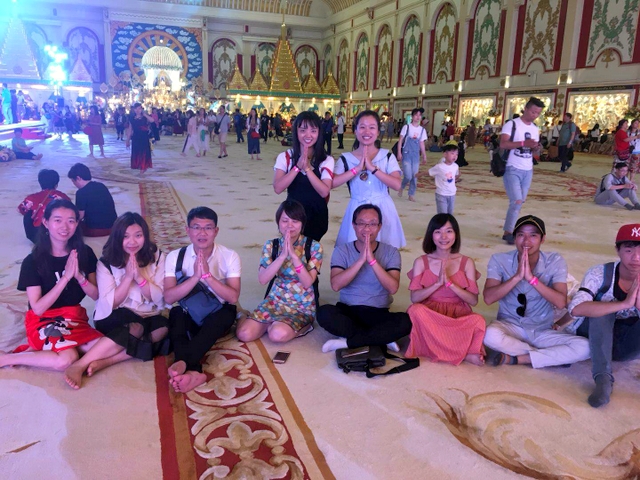 四面佛,在东南亚,特别是泰国被认为是法力无边,掌握人间荣华富贵之神,其四面各有一尊佛面,从右往左按照逆时针方向,分别代表平安、财运、婚姻与事业,是泰国香火最旺的佛像之一。老师们在这里按照当地习俗,各花20泰铢敬上几炷香,虔诚地默求着各自的幸福,也祝福着正源蒸蒸日上,鹏程万里,祝福正源学校的老师们年年有今朝,岁岁保平安。