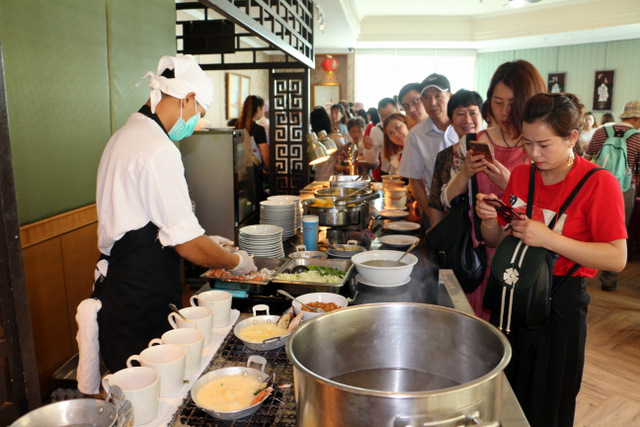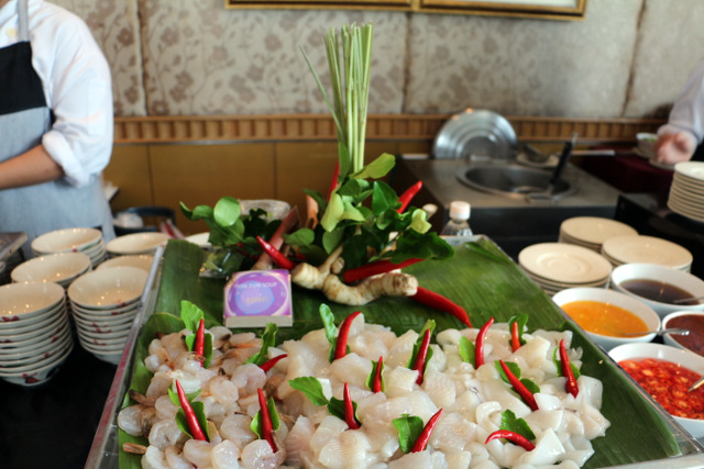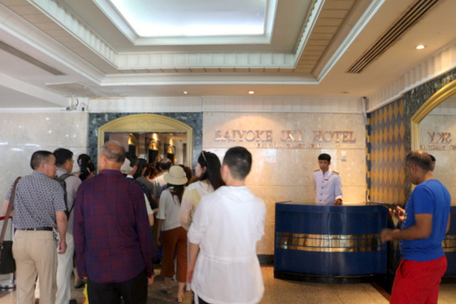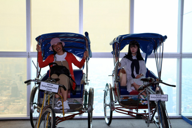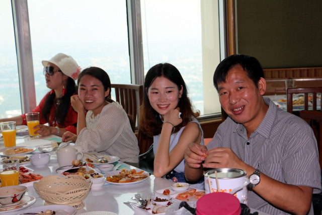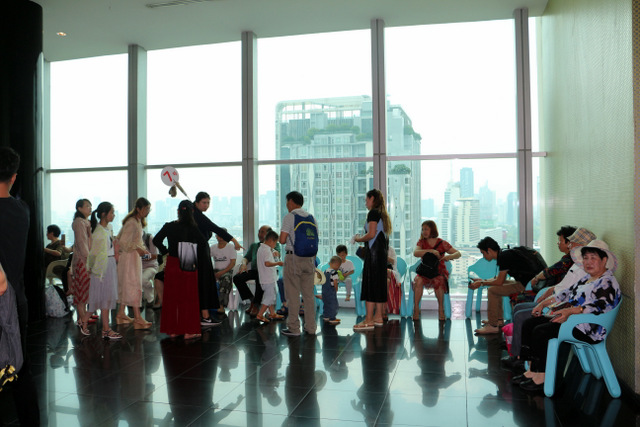 30多度的天气带着大家热情高涨,排队到达BAIYOKE 19层后 再转电梯直达77楼观光台,不仅有马车、凉台、阁楼、壁画等让你目不暇接的实景合影道具,还有可把曼谷尽收眼底的望远镜。俯视下的曼谷琳琅满目,目不暇接。远近高低各不同。在上两层的自助餐厅,更是让大家赞不绝口,美味海鲜,现场的特色烹饪,加上中文菜名,回味无穷。