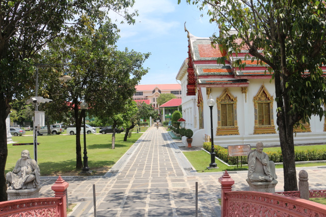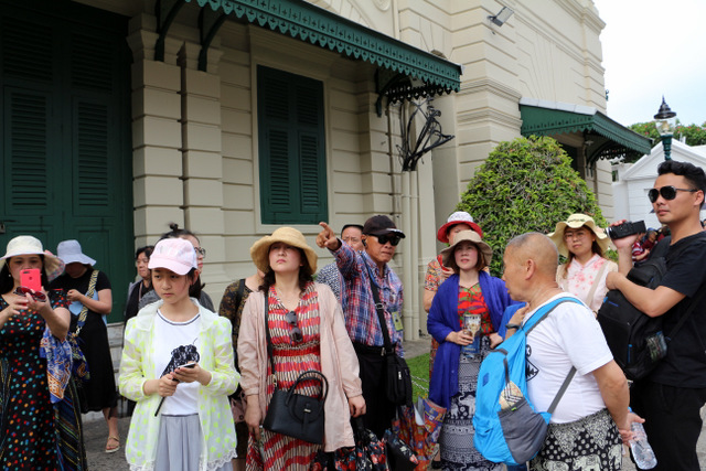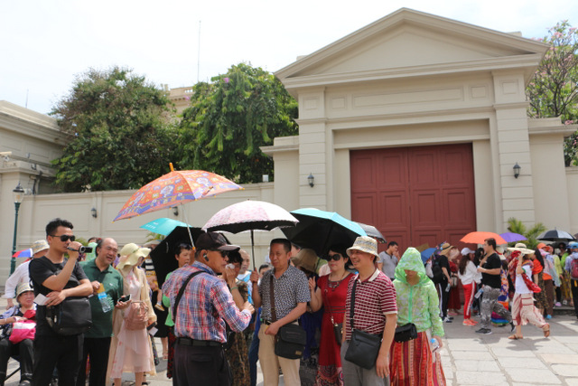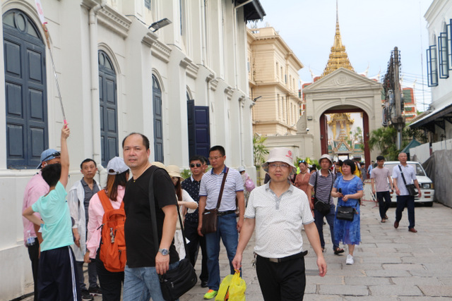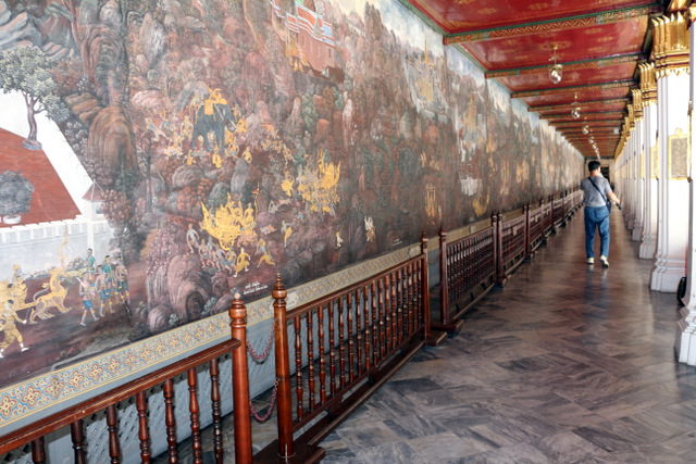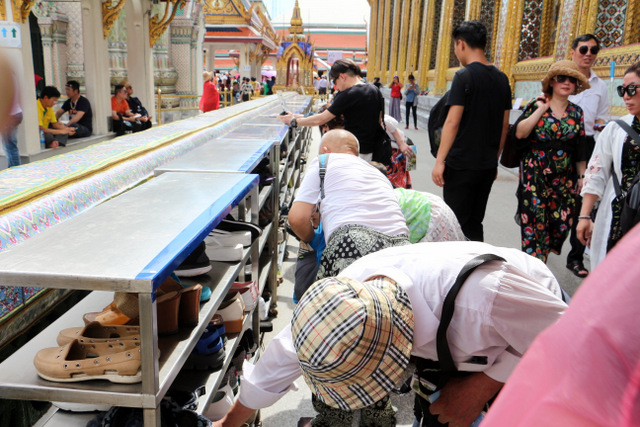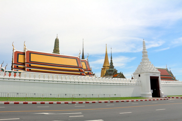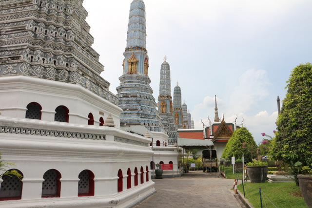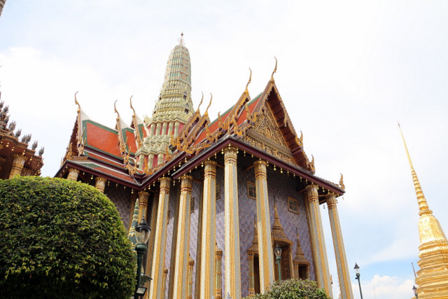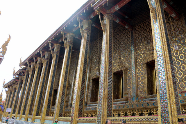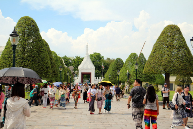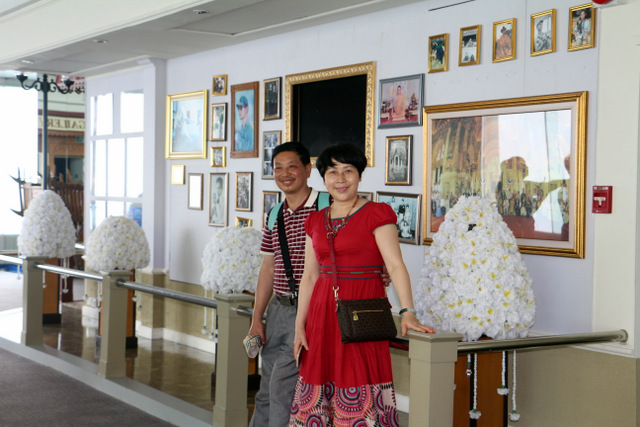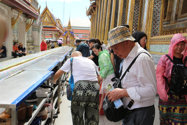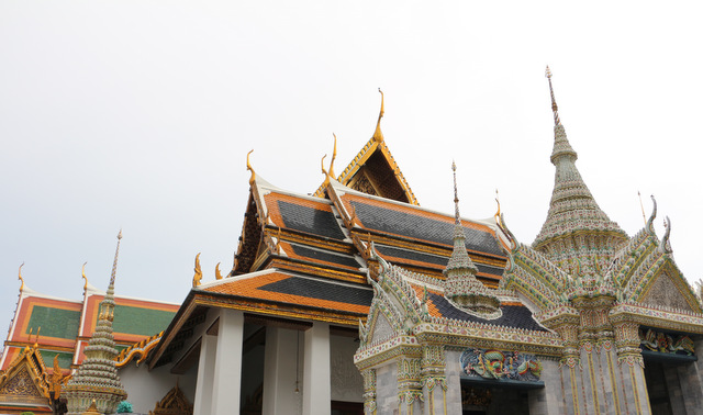 皇室是泰国的政治、文化核心。大皇宫始建于1782年,经历代国王的不断修缮扩建,现在是曼谷中心内一处大规模古建筑群(计28座),总面积218400平方米。紧邻湄南河,大皇宫汇聚了泰国的建筑、绘画、雕刻和装潢艺术的精粹。其风格具有鲜明的暹罗建筑艺术特点,深受各国游人的赞赏,被称为 “泰国艺术大全”。更是泰国用于举行加冕典礼、宫廷庆祝、外交等仪式和活动的最重要的场所。平时对外开放,也就有了我们今天的一路期待。在皇家讲解员的带领下,参观了金碧辉煌的宫殿群,了解了传奇的历史人物故事,惊叹之余不由新生敬仰。诚心祈福后,众多游人,多手持莲花点圣水,祈福平安、健康、好运随。