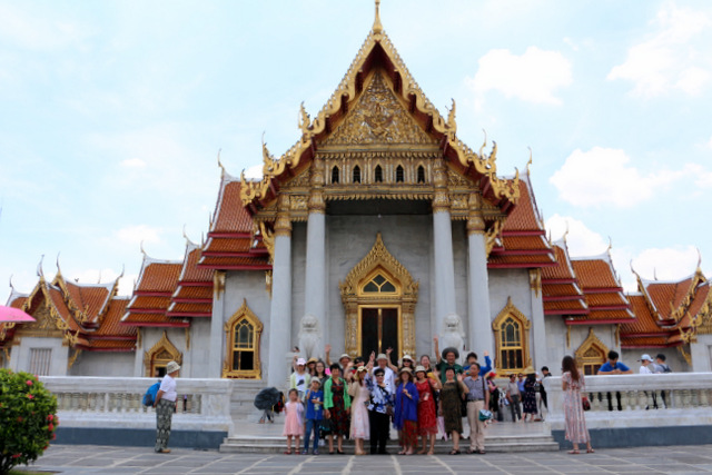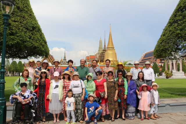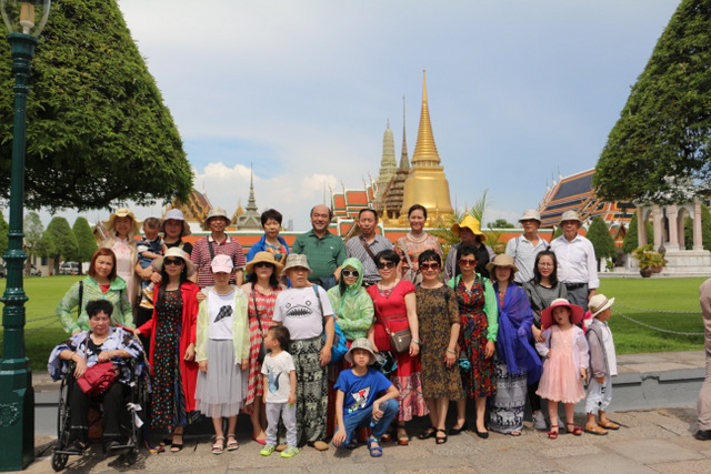 5月4日,正源学校第二批环球之旅的老师与家人们在曼谷的皇宫大酒店养足了精气神,10点45分开心的出BAIYOKE 大夏。