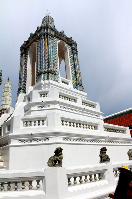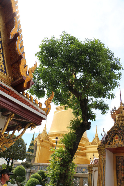 满足了口福,下午的第一站来到最负盛名的泰国佛寺---玉佛寺。也是泰国三大国宝之一。玉佛寺是泰国佛教最神圣的地方,是查库里王朝的守护寺和护国寺,建于1782年的玉佛寺是泰国大王宫的一部分,面积约占大王宫的1/4。玉佛寺是泰国王族供奉玉佛像和举行宗教仪式的场所,因寺内供奉着玉佛而得名。寺内有玉佛殿、先王殿、佛骨殿、藏经阁、钟楼和金塔。站在菩提树下,虔诚由生爱意深深。