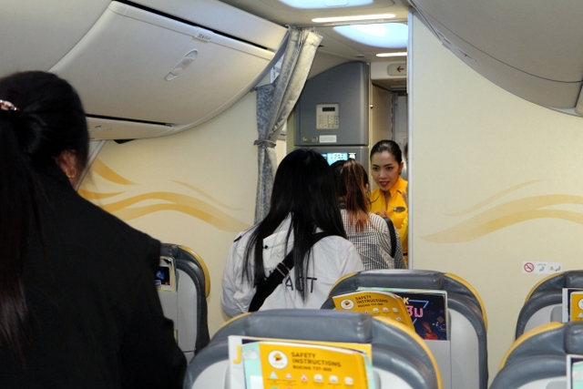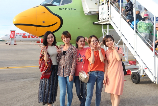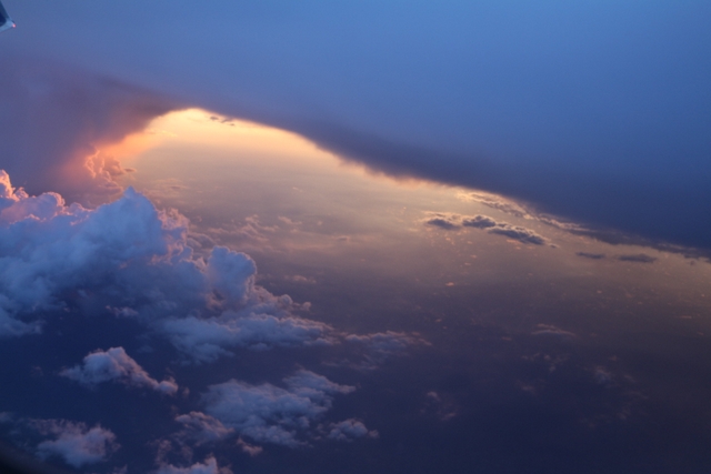 餐后,导游上车与大家道别,感谢大家对其工作的支持,希望有缘再见。虽是短暂相处几日,老师们和导游 已是难舍难分。下午一点四十分,大巴车平安抵达芭提雅机场,开始办理登机手续。17点52分,飞机起飞回国。 机窗外海滩碧绿,白云朵朵,晚霞娇艳。抬头远眺白云间的晚霞如回眸的姑娘,留念而难舍。