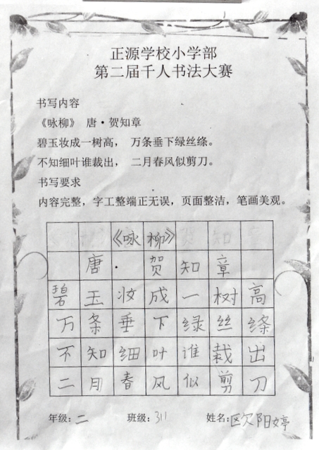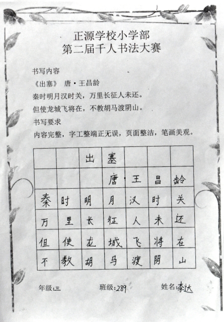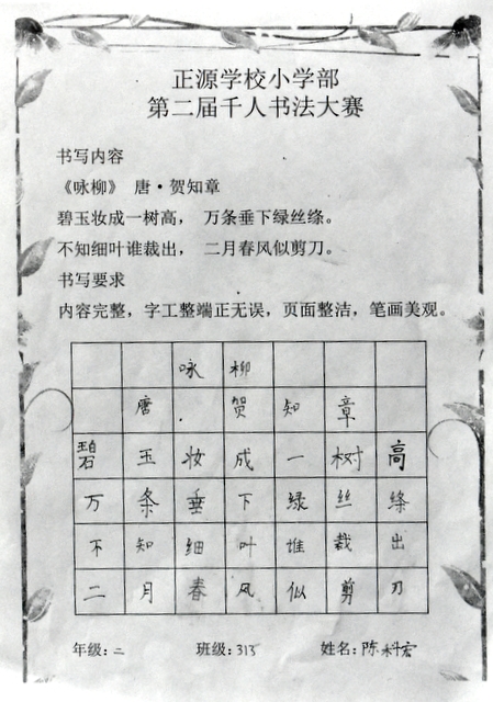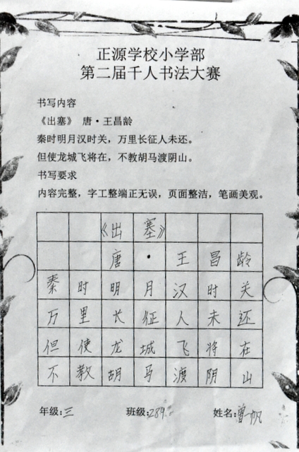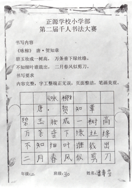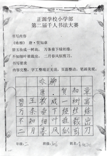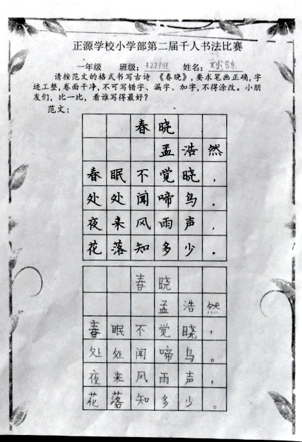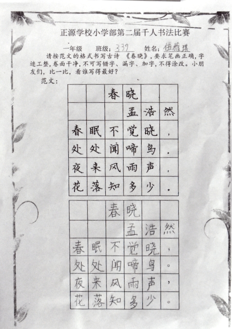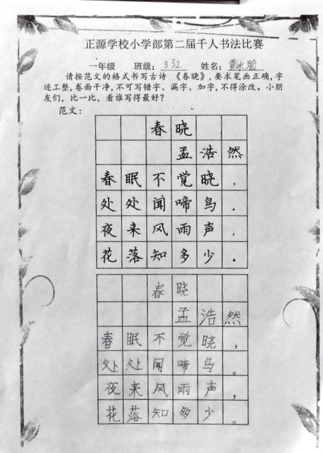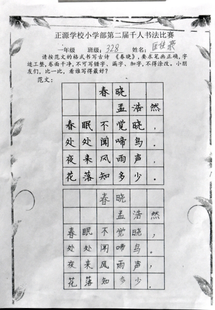 书法乃中国的国粹,也是一门博大精深的艺术。从小学习书法,练就一手好字,让同学们受益终身。书法课作为正源小学部语文教学的四大模块之一,学校一直重视孩子们的书写水平。