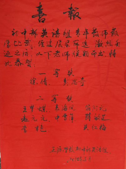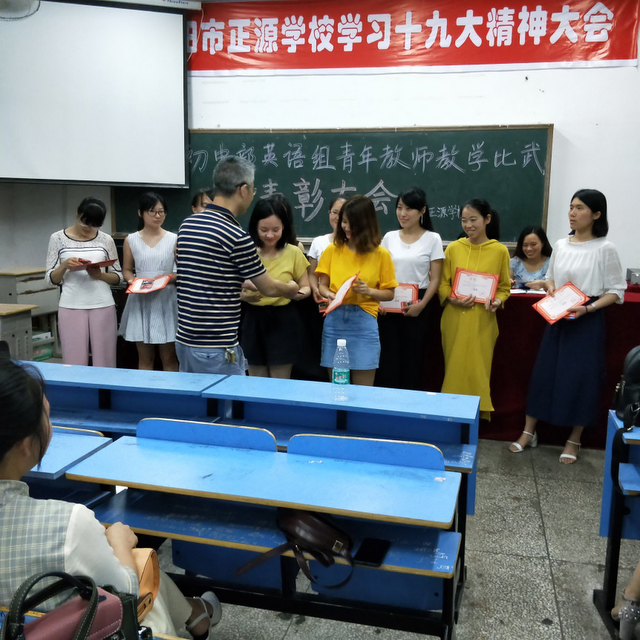 5月16日晚,正源学校初中部一年一度的英语青年教师比武活动随着表彰大会的结束落下帷幕。学校培训部主任、初中及小学部英语教研组组长刘静老师主持本次颁奖活动。