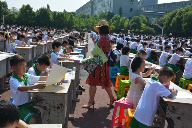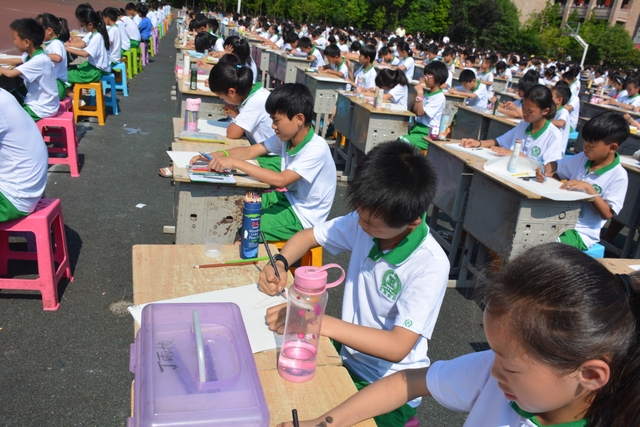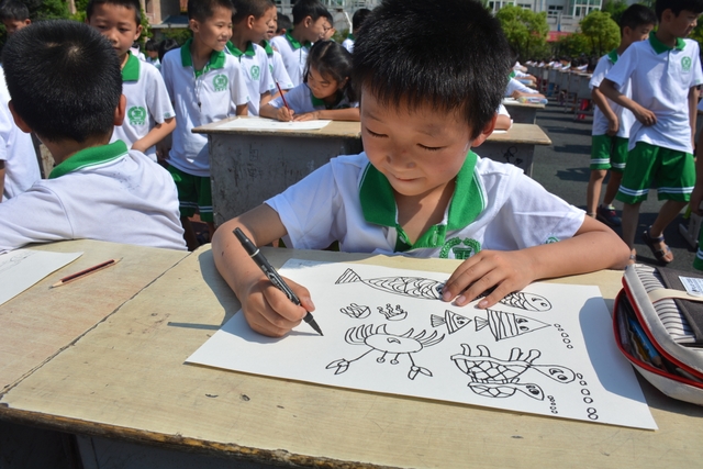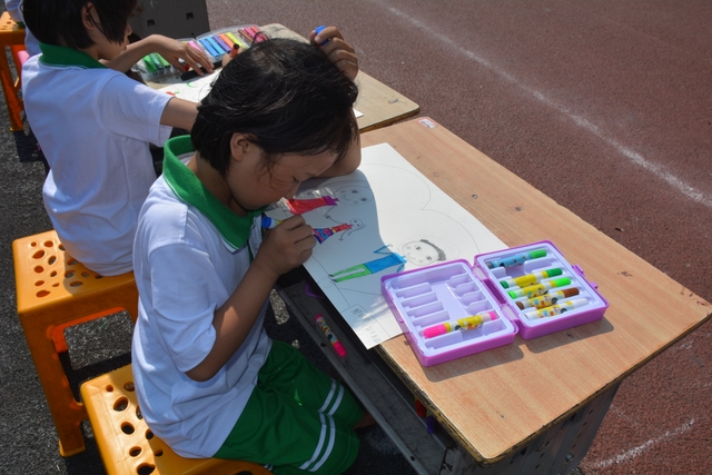 此次比赛共1000人参加,其中一年级100人,二年级125人,三年级175人,四年级225人,五年级275人,六年级100人。在绘画现场,孩子们用手中的画笔展示着自己的绘画才能,尽情地抒发自己对艺术地理解与创作。比赛持续了一个多小时,在烈日炎炎之下,孩子们头上、背上、手心都冒汗了,就连桌上地蜡笔也有点融化了。尽管如此,他们依然坚定地拿着彩色笔,把作品完成,他们地这份毅力,这份坚持,凸显他们对艺术的热爱。