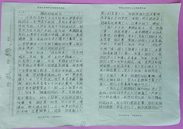5月16日,正源学校第11届小学生运动会圆满画上句号。然而,运动会上精彩瞬间,感人片段却深深地留在孩子们的心里。为了让这精彩的瞬间永驻,5月18日晚上,五年级举行了以“运动会上的精彩瞬间”为主题的作文竞赛。