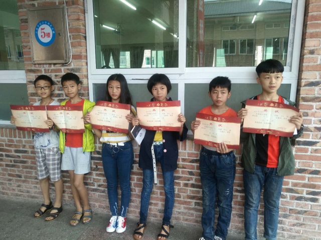 年级语文备课组长陈华弟为他们颁奖,祝贺他们取得优异成绩,并鼓励他们多观察,多思考,多写作,在写作的道路上越走越远!