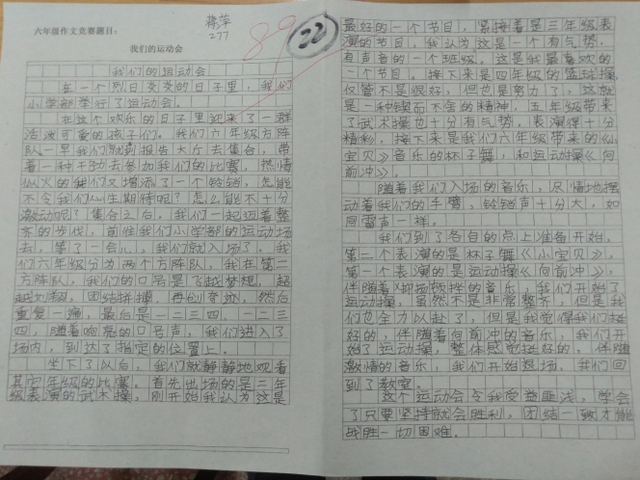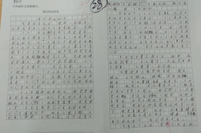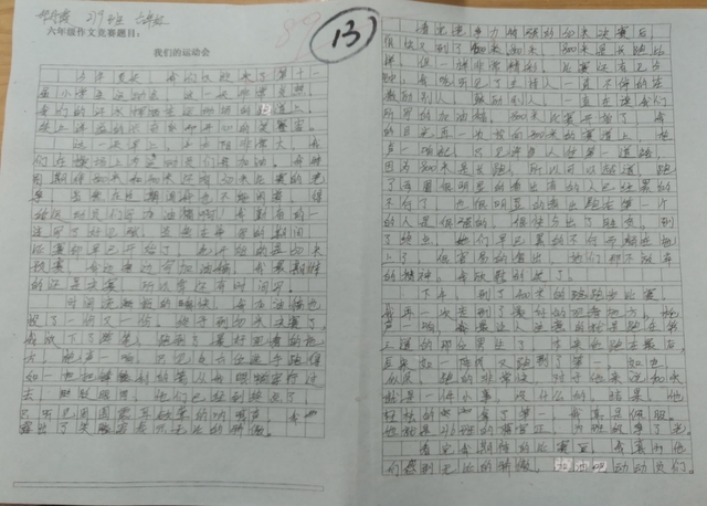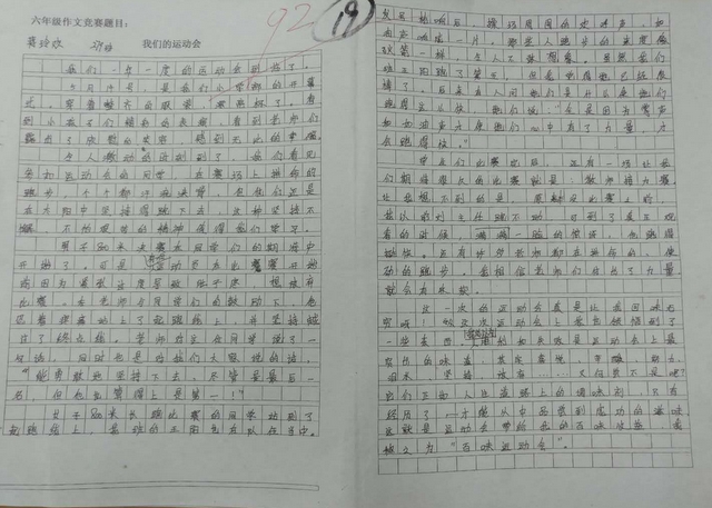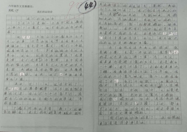 为进一步提高学生的作文水平和语文素养,按小学部语文教研组计划,借小学生运动会刚刚举行的东风,5月17日晚,六年级举办了以校运动会为主题的学生作文竞赛。
