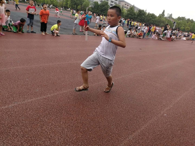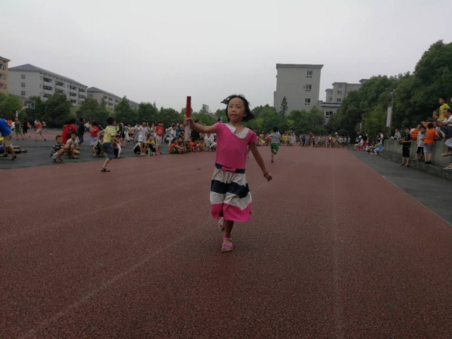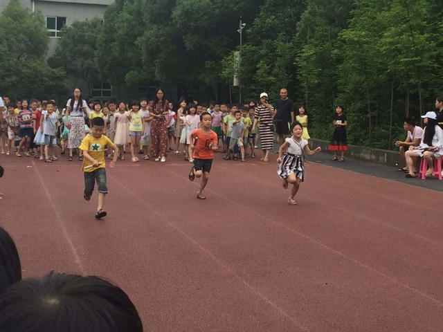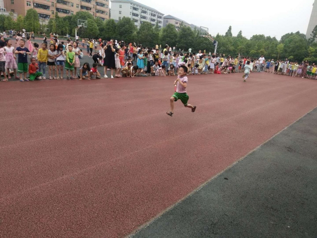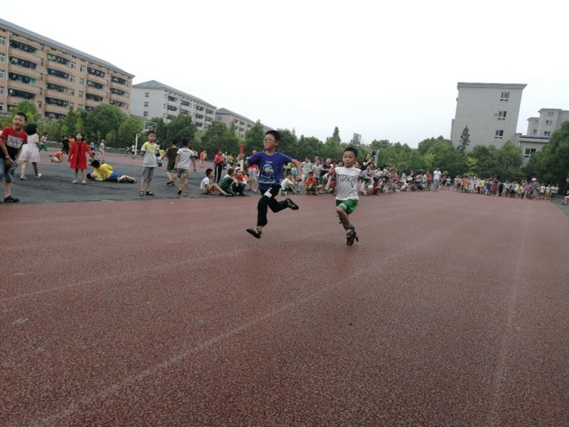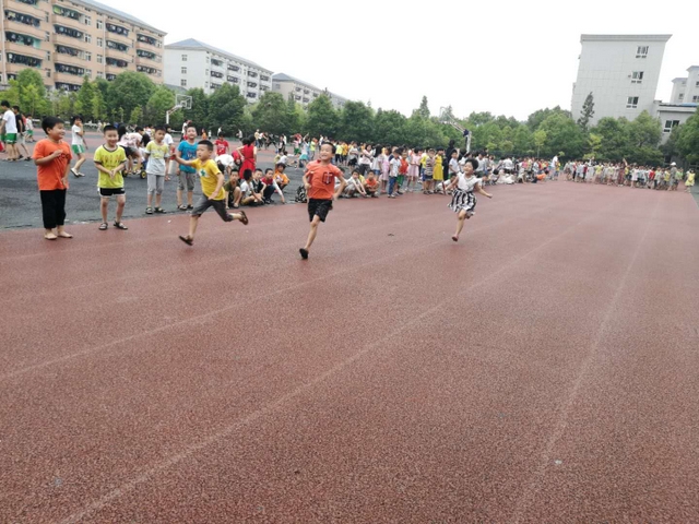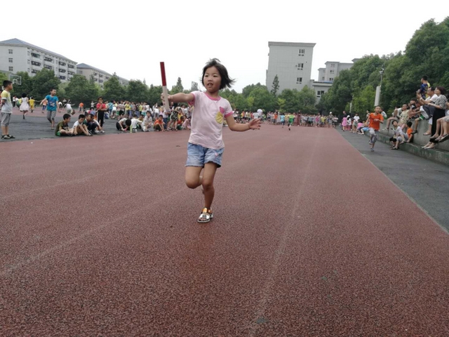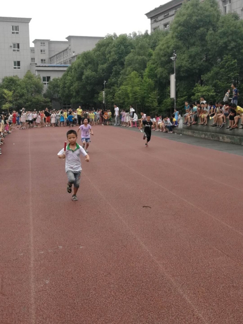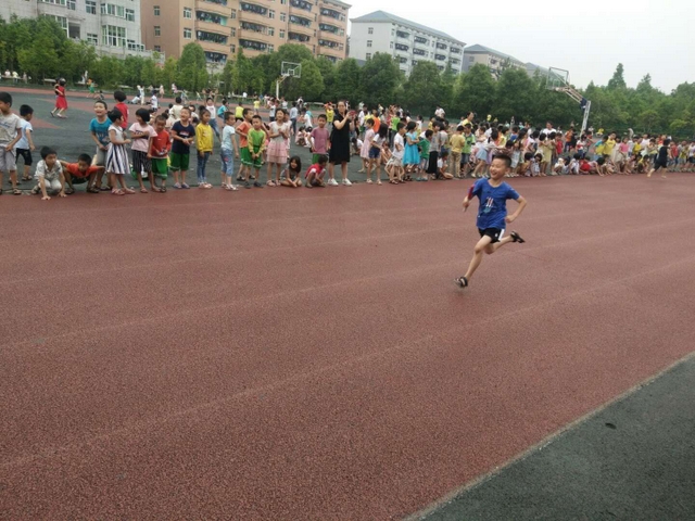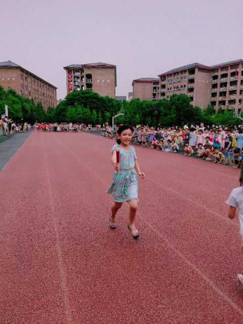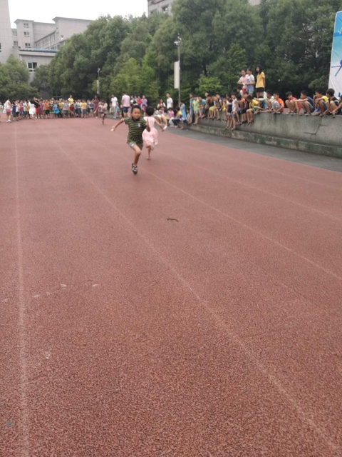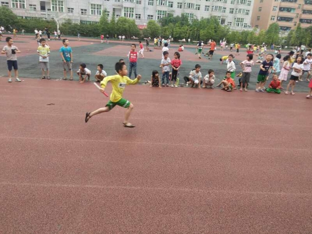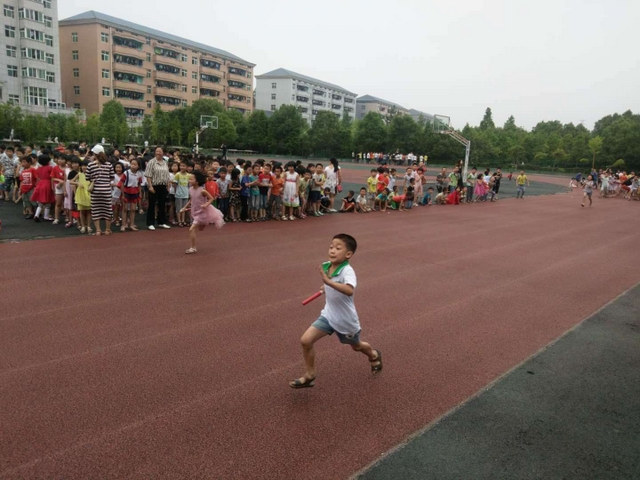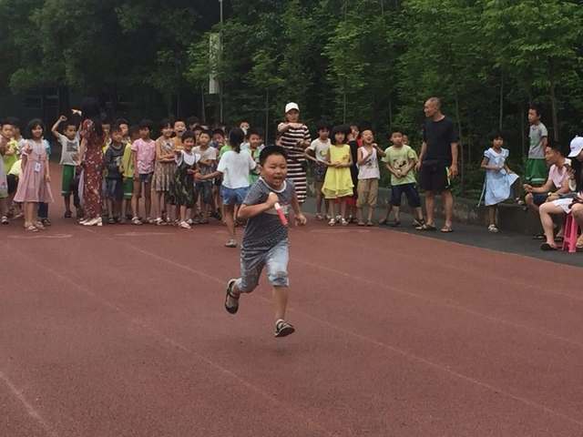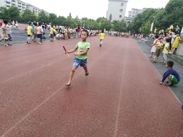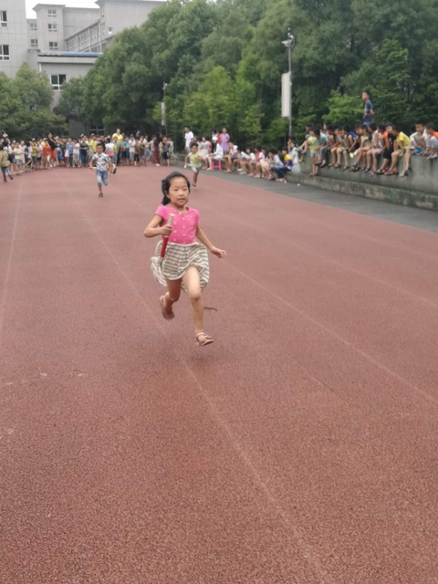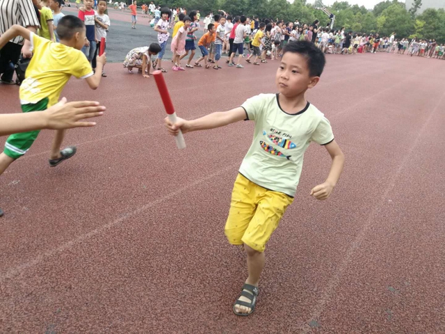 “各就各位——预备——跑!”随着一声令下,操场上顿时沸腾起来。首棒运动员像离弦的箭,一下子就冲出起跑线。在一片加油声中,他们争先恐后,你追我赶。孩子们呐喊助威,呐喊声响彻校园的每个角落,此起彼伏,震耳欲聋,热闹非凡。308班的“飞毛腿”谭超和310班的“短跑小将”罗鸿亮,他们像脱缰的野马,不顾一切地向前冲,脸都憋红了,遥遥领先的他们赢得了同学们的阵阵喝彩。再看306班的小运动员邝靖宇,不知什么原因,落后一大截,同学们恨不得伸出手拉他一把。“屋漏偏遭连夜雨”,小将王诗彤摔倒了,只见她快速爬起来,皱着眉,抿着嘴,胸脯高高抬起,额头高高扬起,继续拼尽全力向前冲!307班的运动小将徐诗清传棒给李若妍时,接力棒出乎意料掉在地上,同学们大惊失色,急得大叫:“快!捡起来!快传!”排名时刻在变化,差距时刻在变化…… 随着小运动员们一次次穿梭,交棒,接力赛迎来第一组最后一棒——冲刺!十米,九米,三步,两步……“耶——”307班最后一棒的小将陈浩宇率先跑到终点!场上的啦啦队们不约而同发出一阵欢呼声。