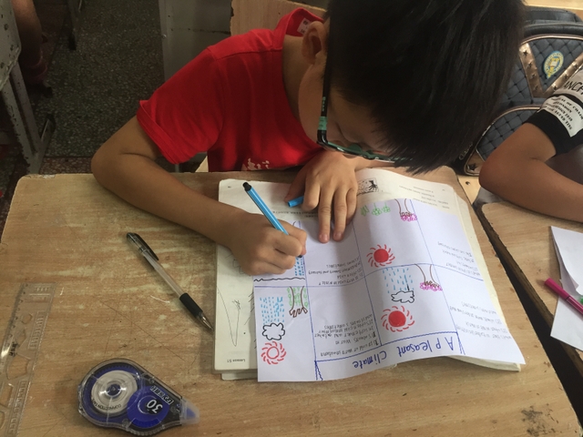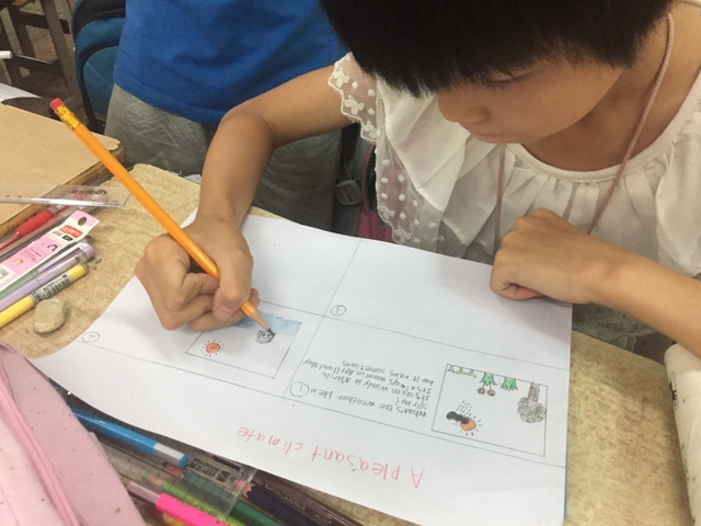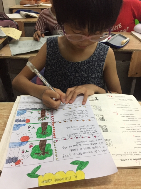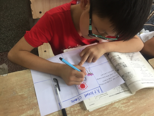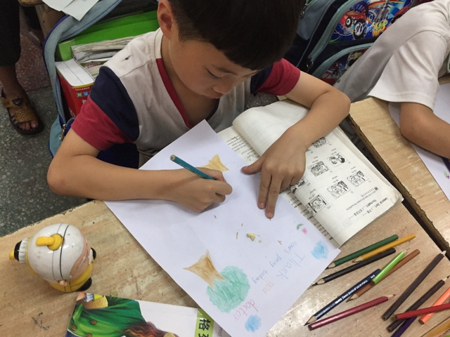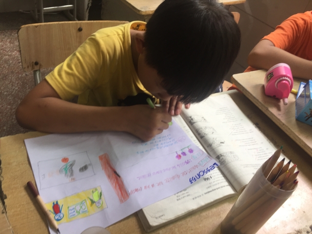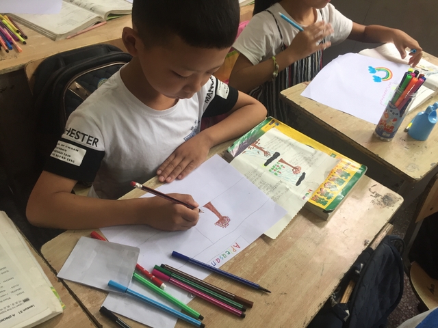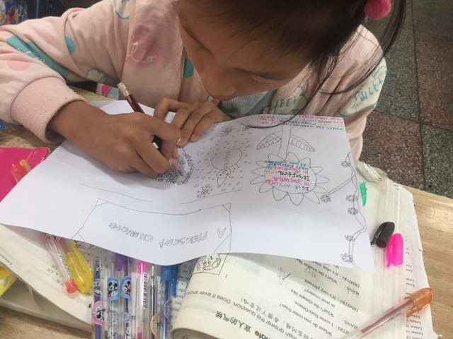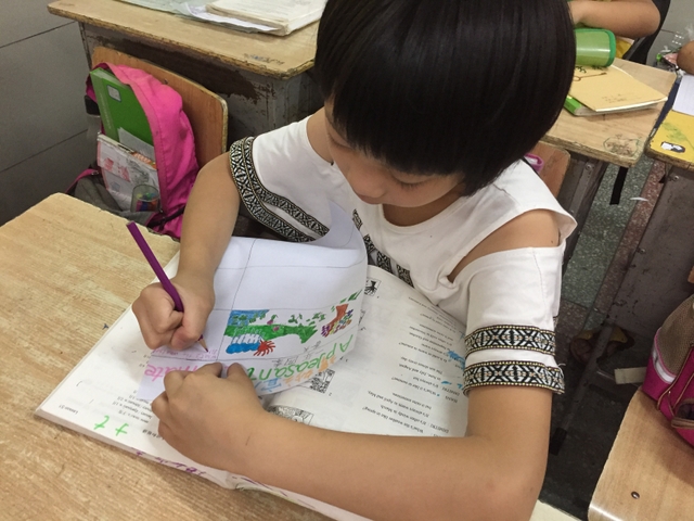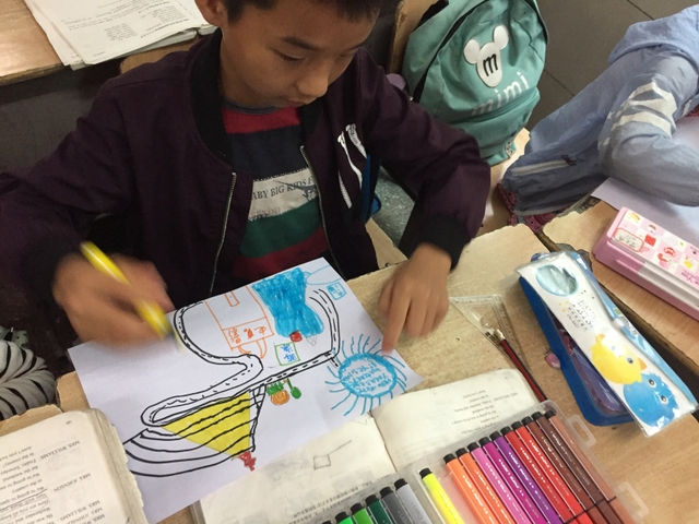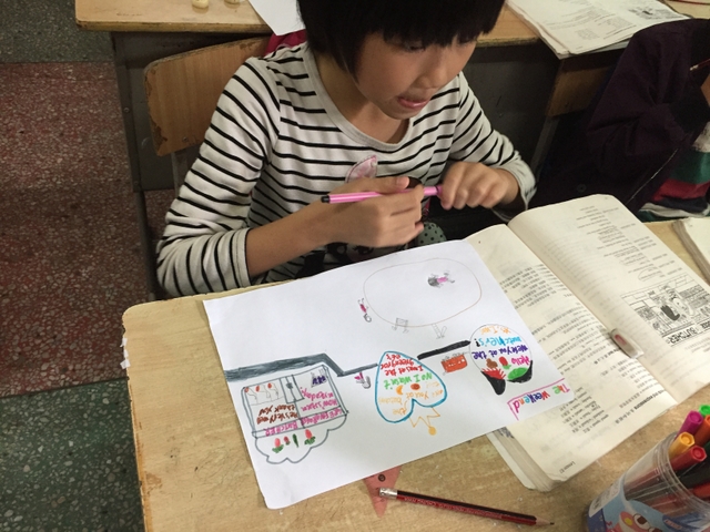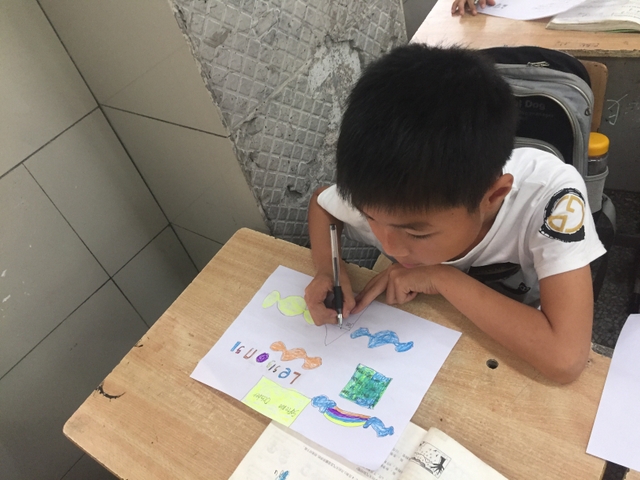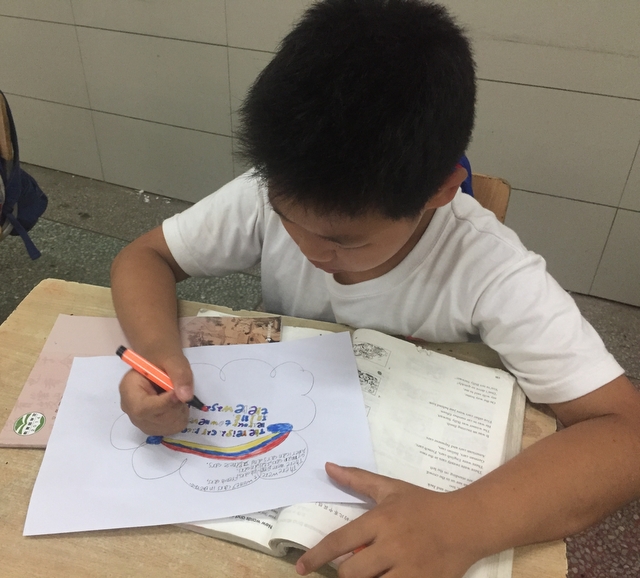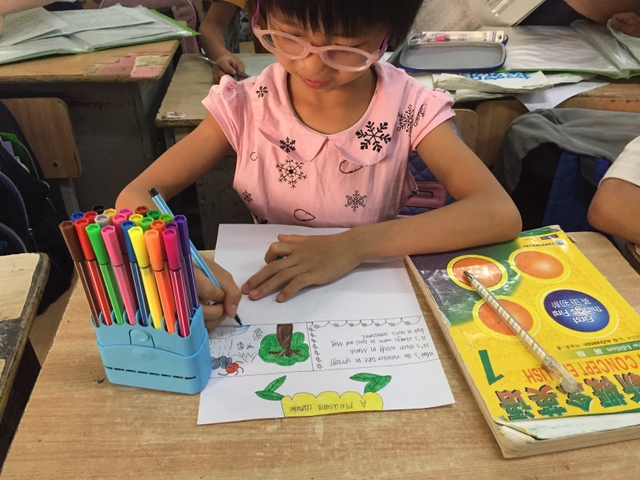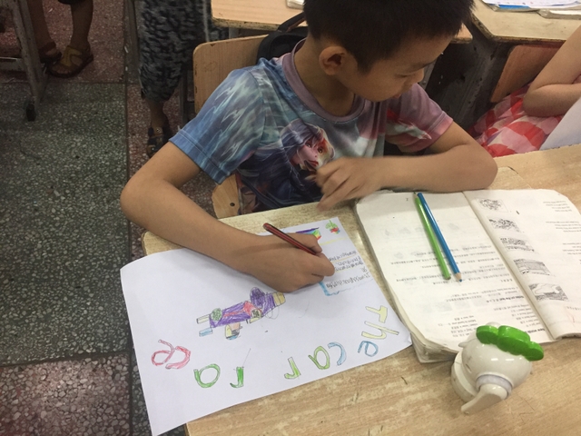 三年级所有学生都参加了比赛,由本班英语老师在上课时间每人分发一张A4纸,在规定时间完成作品并上交。每个孩子都有自己的想法,他们尽情发挥自己的想象力,想要呈现最好的作品。