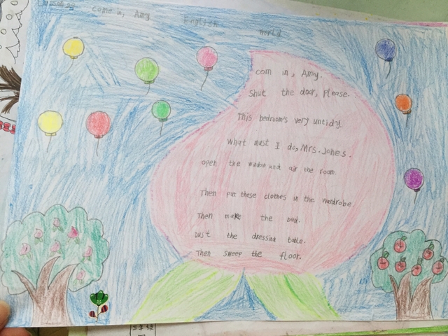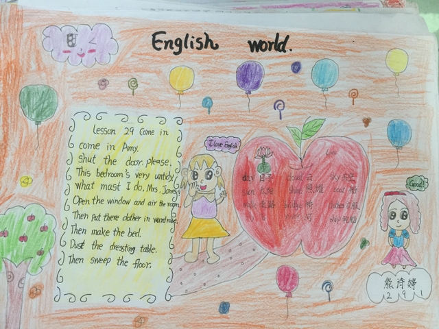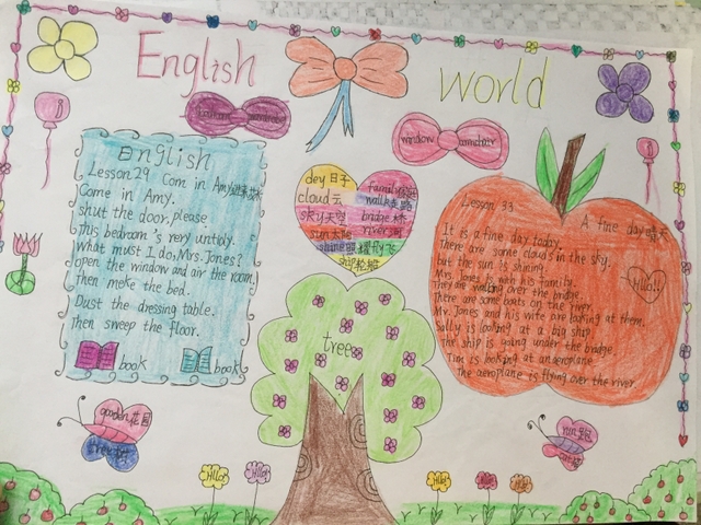 为了提高同学们的创新思维能力,激发同学们对英语书写、绘画、创作等技能的学习热情,体味学习英语的丰富多彩,调动同学们的英语学习积极性,小学三年级英语组在5月27-28日举行了英语课文手抄报设计大赛。本活动以三年级所学英语课文为内容,绘画及书写设计由学生任意发挥。要求绘画精美漂亮,书写正确,内容完整。作品整体美观整洁,有艺术感。绘画部分必须上颜色。