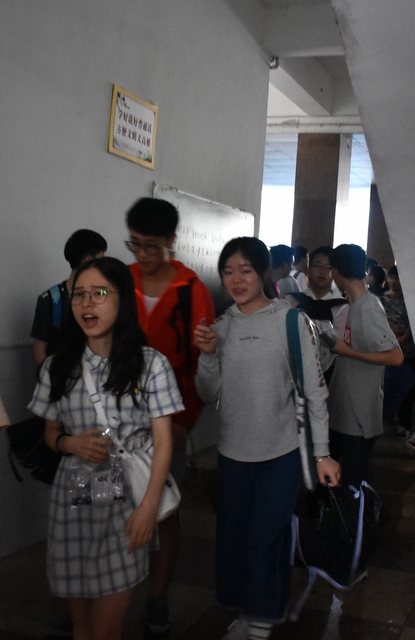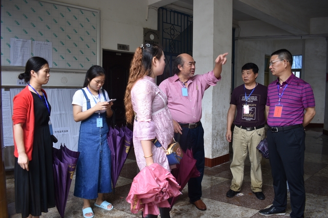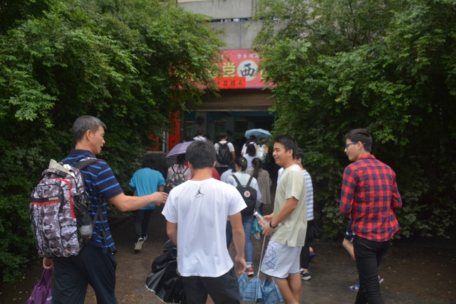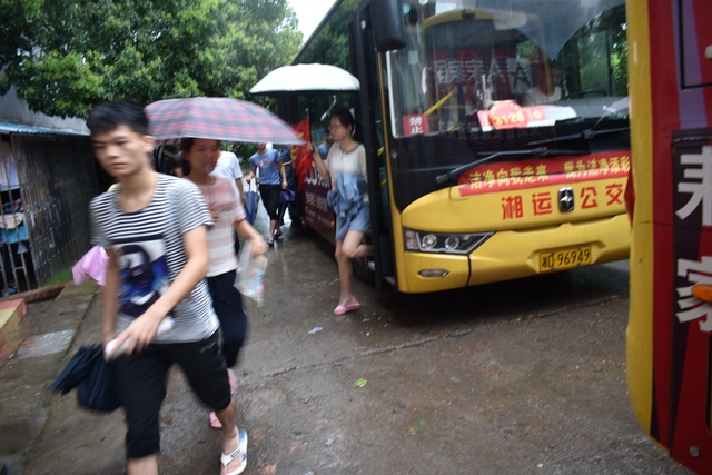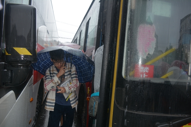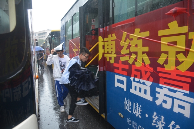 下午,职高考点由于下雨还在继续,洪水没有退去,大巴还需绕道而行,开考前十几分钟,同学们全部进入考场。