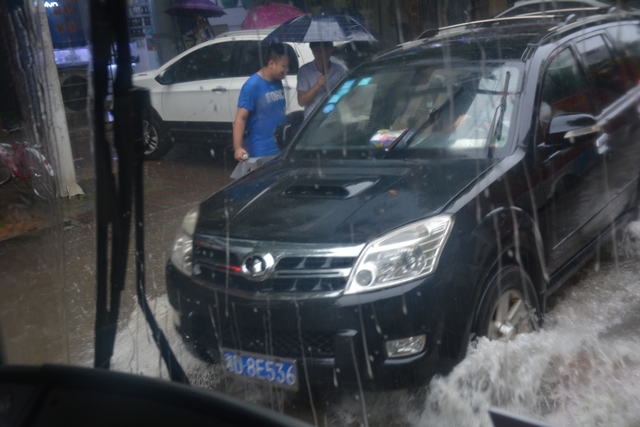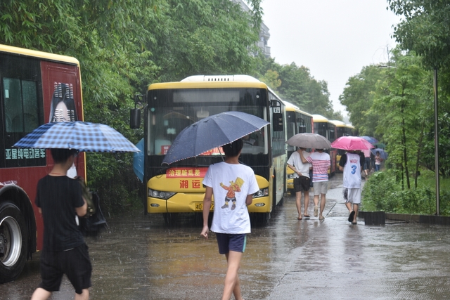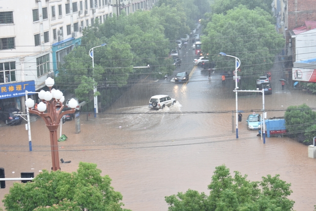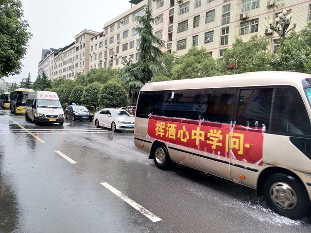 上午的考试结束,职高考点前面的街道上已是一片汪洋,耒阳城俨然成了威尼斯。考点工作人员临时改变出校口,学校带队领导及时与车队和交警联系,确定上车地点和行车路线,基本上顺利回到学校。