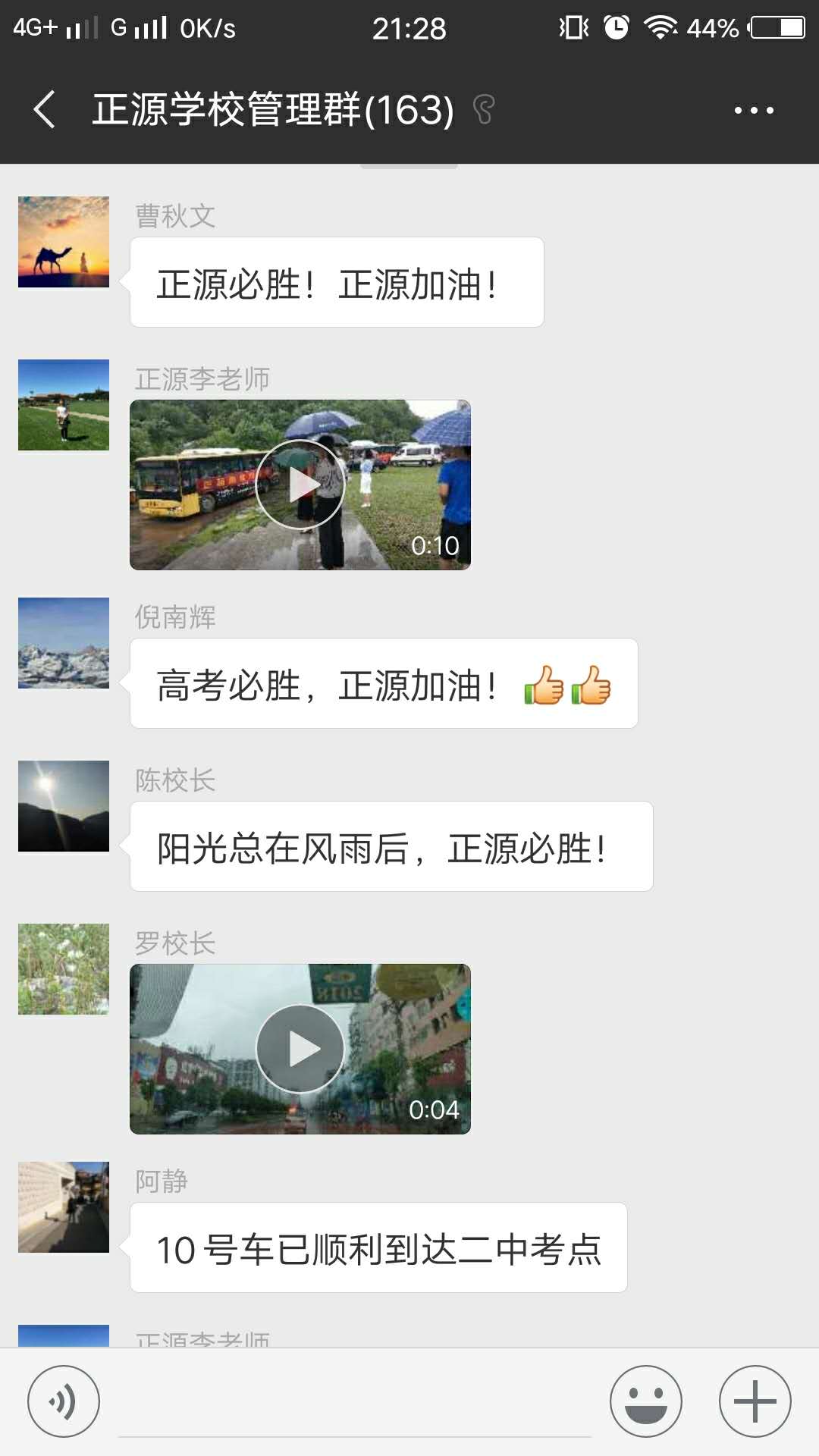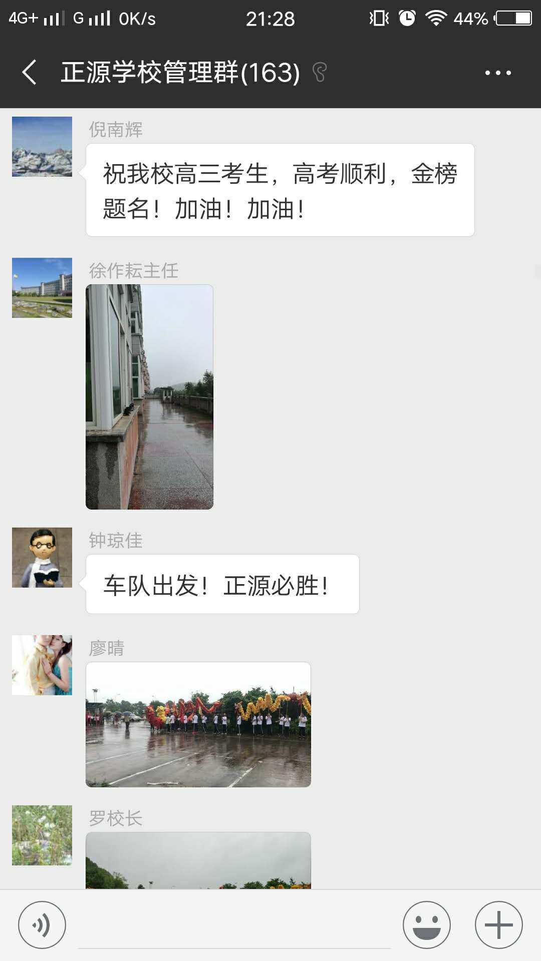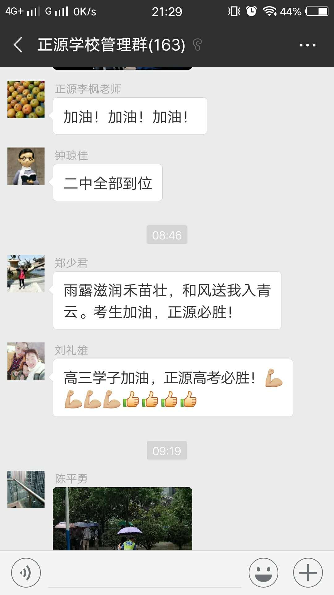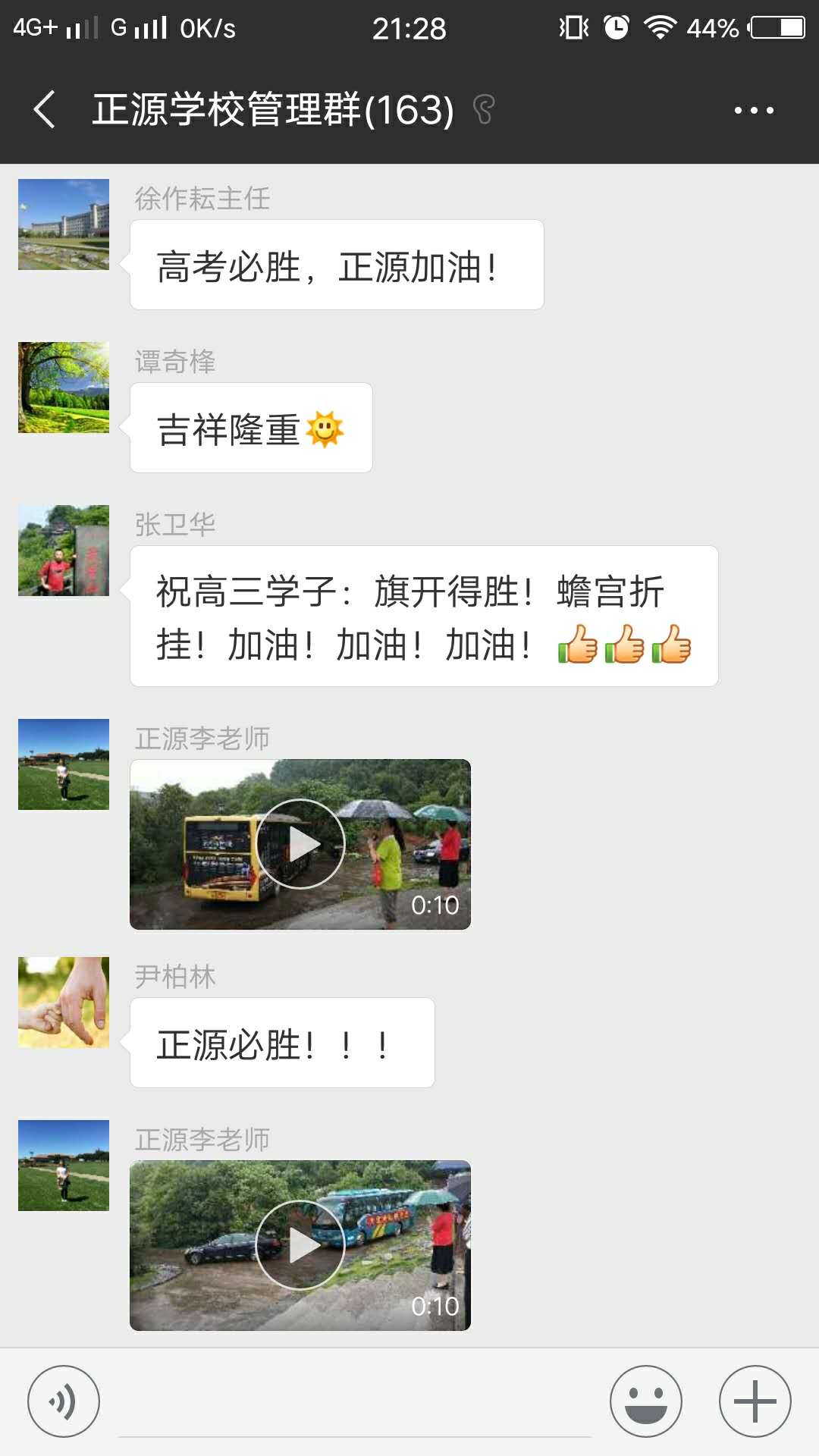 全校教职员工纷纷通过微信群祝福正源考生旗开得胜,金榜题名。