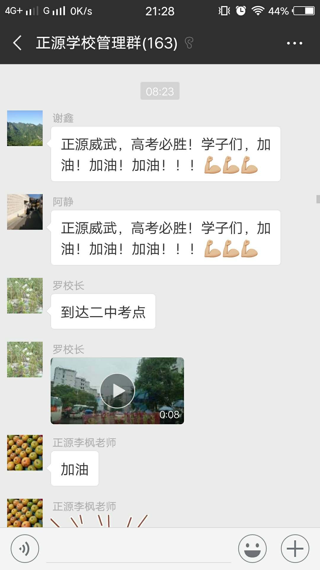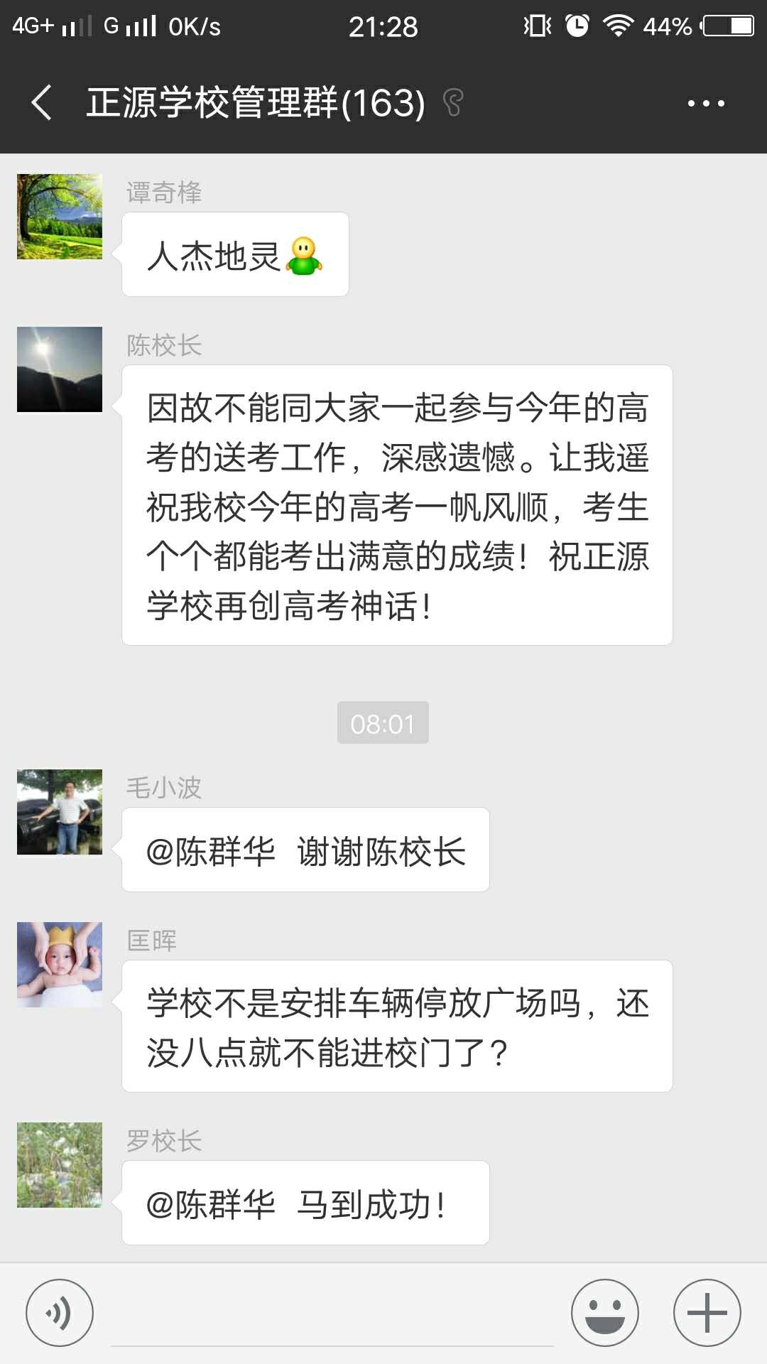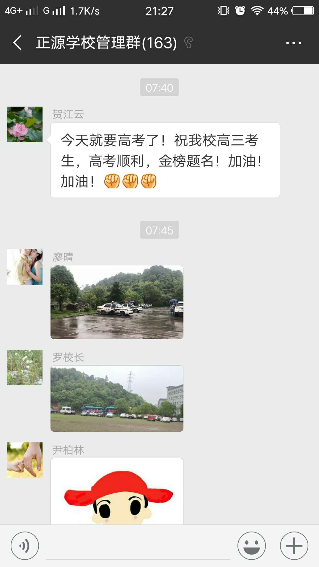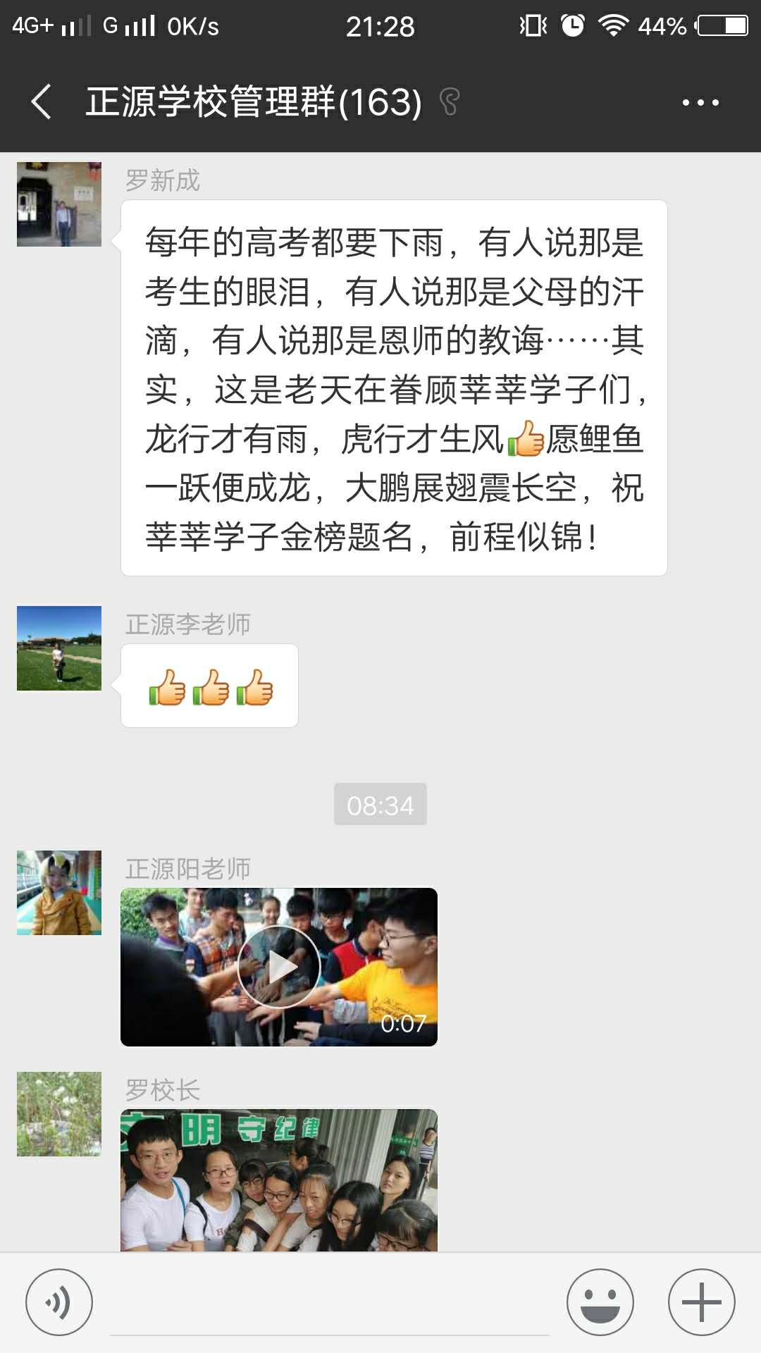 全校教职员工纷纷通过微信群祝福正源考生旗开得胜,金榜题名。