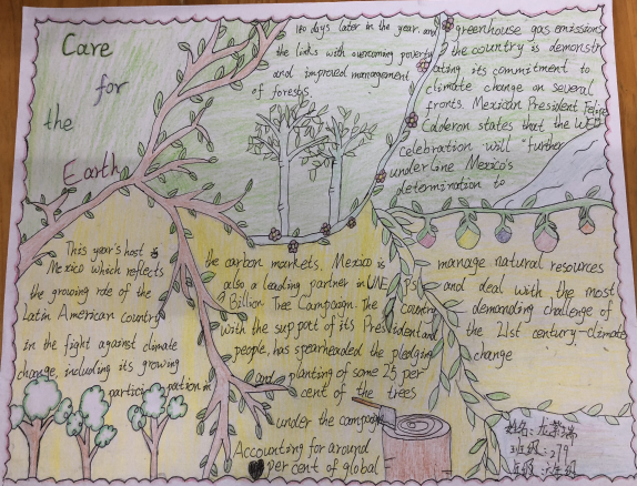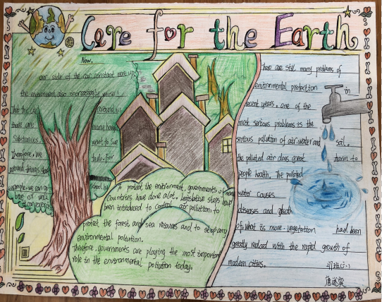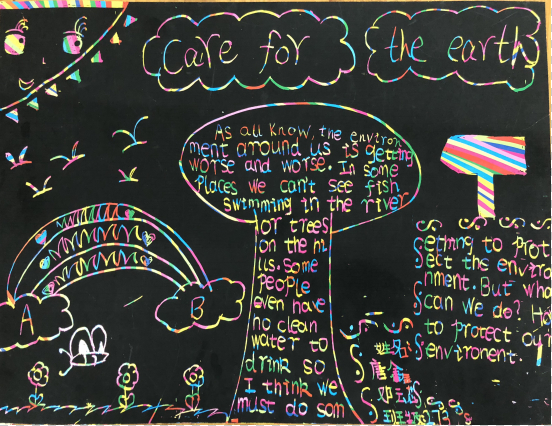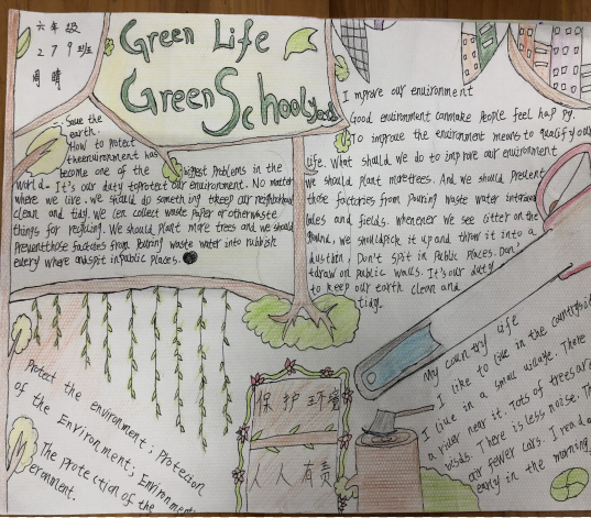 为了激发学生学习英语的兴趣,提高学生的英语书写水平,让学生感受英语的魅力,小学部六年级在5月份举行本次英语手抄报活动。本次手抄报的主题是保护环境,关爱地球。在本次比赛中,同学们积极参与,用自己的智慧和巧手,制作出了一张张精美的英语手抄报。许多作品不仅色彩丰富,图文并茂,书写美观,给人以赏心悦目的感觉,而且标题醒目突出,版面设计新颖独特,充满了童真,童趣。尤其是美术班的同学,将英语与素描,刮画等元素相结合,创作的手抄报更是别出心裁。