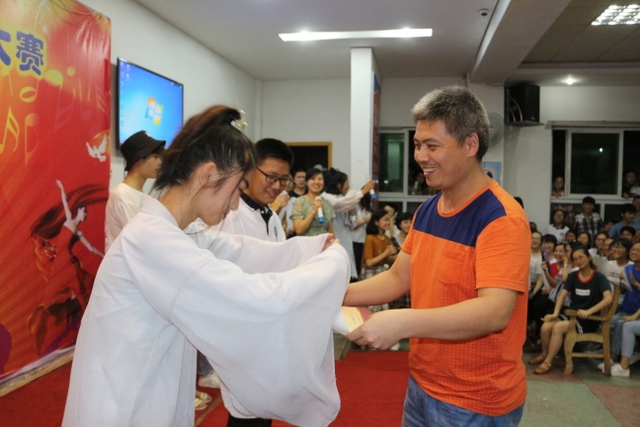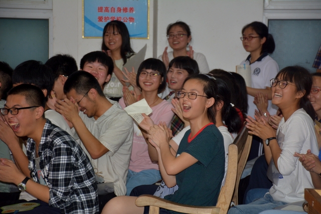 在评委们进行紧张的统分时,许多观众也自告奋勇上台展现自我,引得大家连连感叹“高手深藏不露”。就连王主任也对其中143班的曹丽红同学令人惊叹的高音表示了极高的赞誉。
