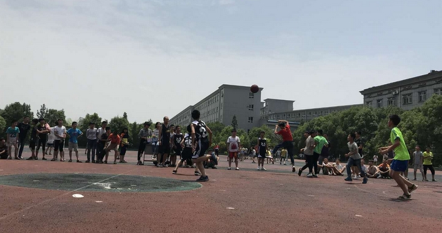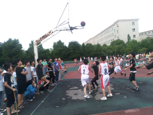 连日阴雨,球赛被迫中断。6月9日,天气晴好,同学们期待已久的第二轮决战终于开始了。晚上6∶20,274班对决275班,275班以18:2轻松取胜,顺利进入冠军争夺战。