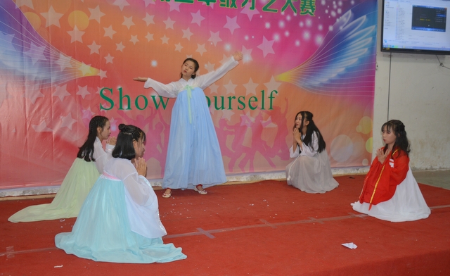 看!四个青春靓丽的少女身着粉白水手服站在了舞台中央,这也是本次音乐才艺秀的第一个节目。音乐响起,身体也律动起来,整个现场被点燃!为本次音乐才艺秀拉开了一个完美的帷幕!