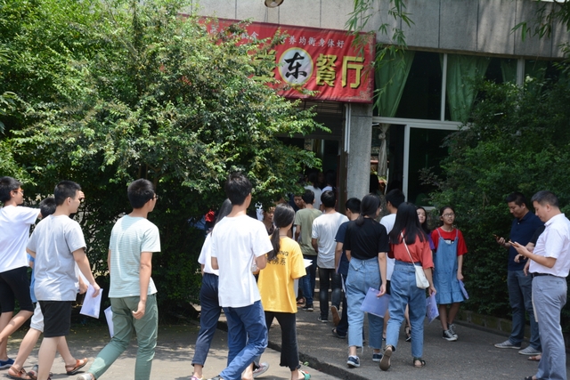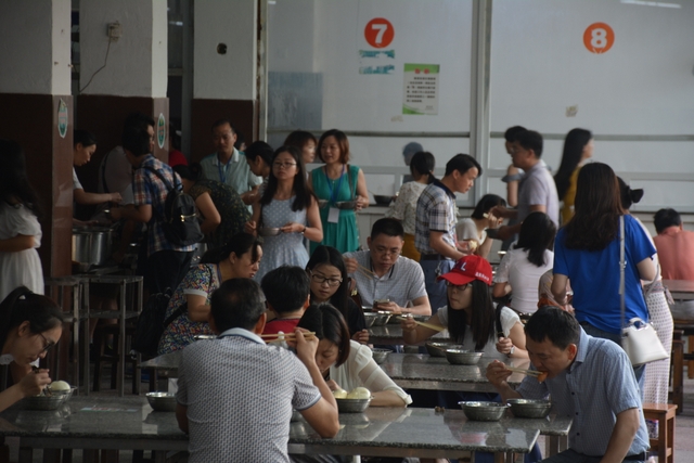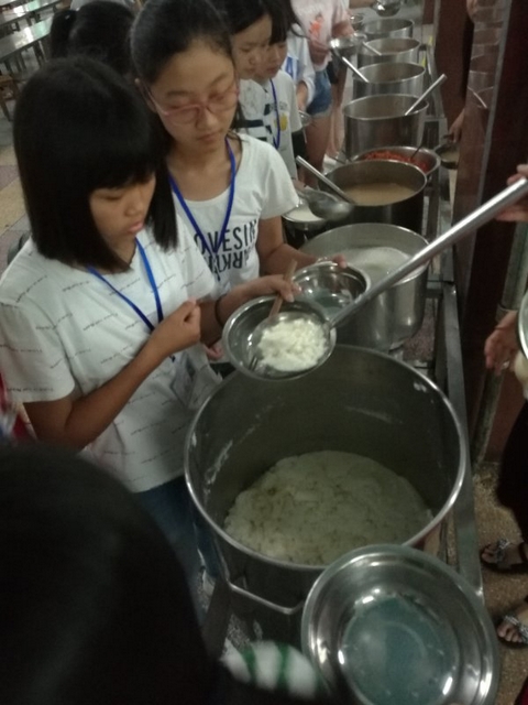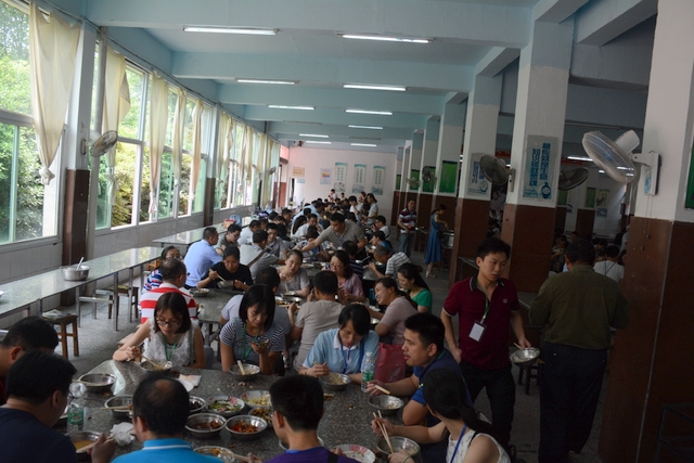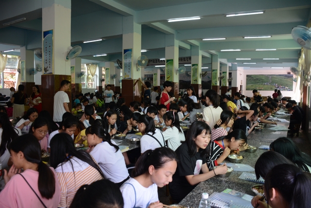 罗校长了解到,正源的早餐,一二中和实验中学来监考的老师也很满意,认为好吃花色多。食堂处主任邓楚云说,正源丰盛的早餐,外校老师赞不绝口,喜欢到正源吃早餐的老师一天比一天多,18号端午节,老师们不在家里同家人一起享受端午早餐,却仍然到正源来吃早餐,可见正源早餐的魅力,今天早餐陆陆续续达到400人,几乎考点所有工作人员和监考老师全部到齐,罗校长为此要特别奖励食堂工作人员。笔者看到,在学校吃过早餐的外校监考老师,每天早餐后都要在食堂前面欣赏满池绿荷红莲,如醉如痴,流连忘返。端午节中餐,学校为全体监考老师和正源的参考学生每人准备了粽子,老师们八人一席,八菜一汤,吃粽子,和饮料,品佳肴,大快朵颐。下午,还有外校监考老师留恋正源食堂的饭菜,吃了晚餐才离去。