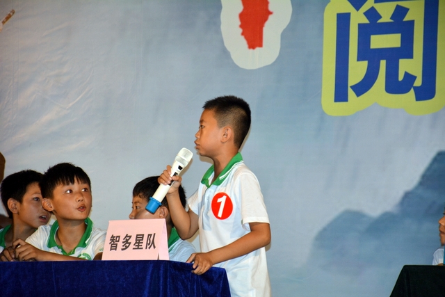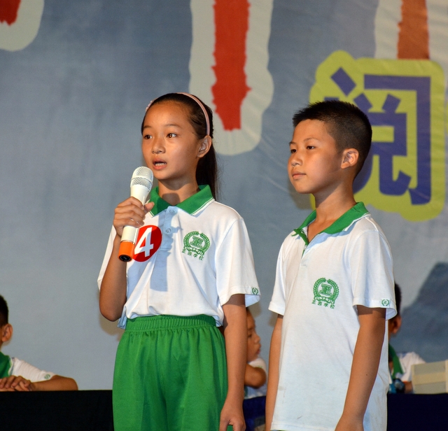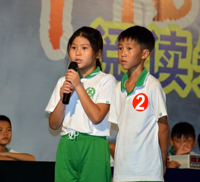 小学部学部主任罗俊豪、语文教研主任贺江云,四年级年级主任阳明权、语文备课组长资明、阅读课教师郑少君、德育主任陈登盛分别为冠军队、亚军队、季军队、优胜队,以及最佳赛手、文明班级颁奖,并与全体选手、表演学生、编导老师、语文老师合影。