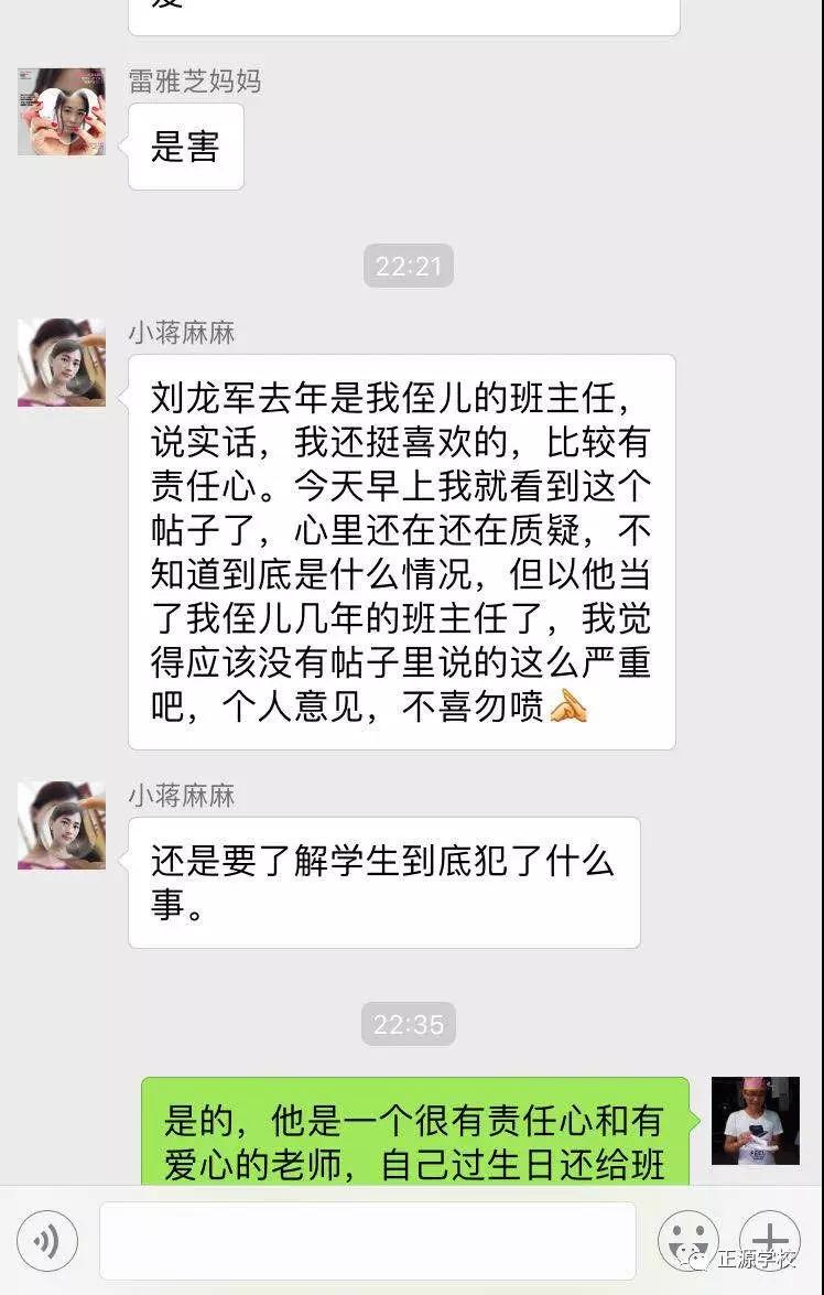 作为一所全寄宿制学校,正源的假期少之又少,外地老师更是难得有机会同家人团聚。刘主任接到学部主任电话后,为息事宁人,只得放弃与家里老人过端午节的机会,却上门给自己的学生赔礼道歉,如此斯文扫地,已经够过分了吧!可是这些网络写手造谣不打草稿,居然说打人者一句道歉的话都没有,难道法律真的是摆设吗!