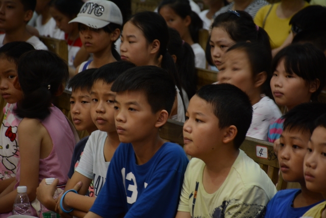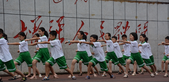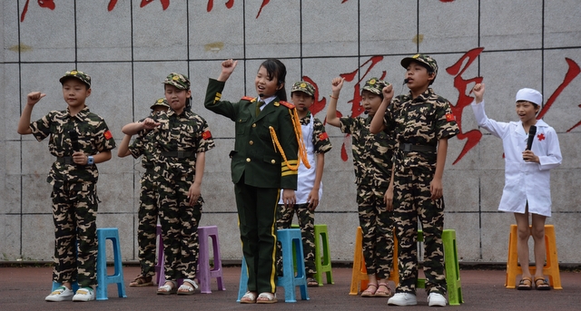 这帮同学们在小学生运动场席地而坐,观看了正源小学部四、五年级的同学们表演的节目:山东快板《梁山泊好汉排座次》、花式篮球《中国范》、威风锣鼓武术,以及话剧《忠诚》等,许多同学表示大开眼界,有些表演是第一次看到。