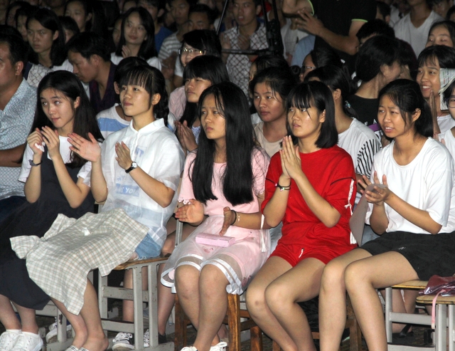 罗校长的讲话持续两个小时,雨中的同学们秩序井然,对校长的讲话不时报以热烈掌声。