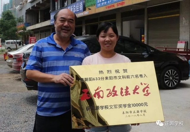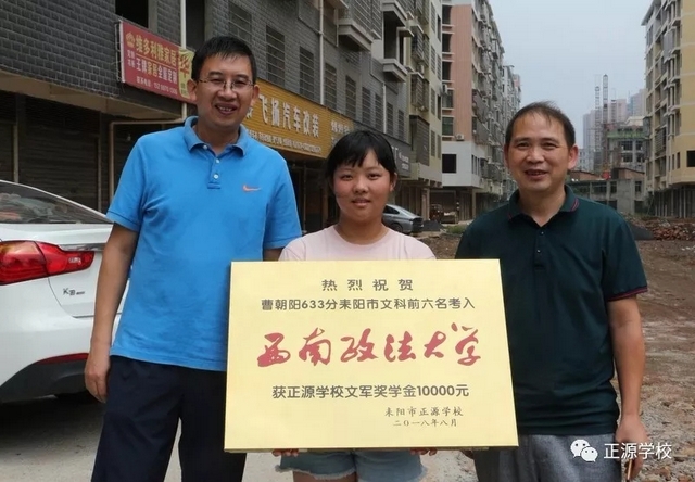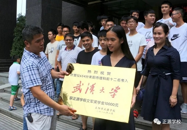 2018年高考,正源学校不仅再一次考取一个空军飞行员和一个民航飞行员,而且囊括了耒阳市文理科状元。按照正源学校文军奖学金评选办法,今年耒阳市理科前十二名我校占7个,文科前六名我校占4个,加上两个飞行员,今年获得文军奖学金的人数为13人,每人奖学金一万元,其中空军飞行员罗威和耒阳市理科状元黄详,耒阳市文科状元曾俊熙三人奖金翻倍。此外,罗威还获得衡阳市“雁城优秀学子”称号,获衡阳市教育局颁发奖学金两万元。