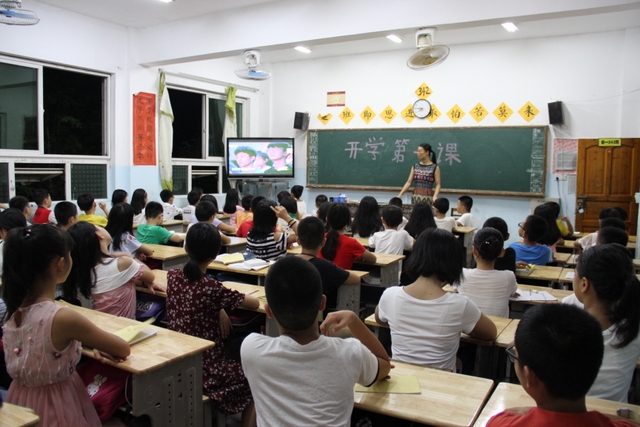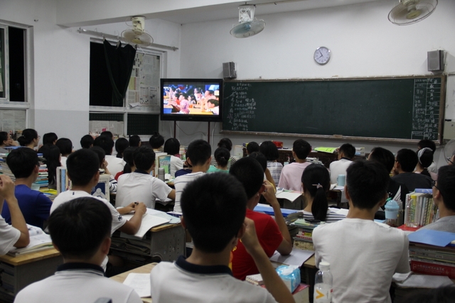 同学们在教室观看《开学第一课》