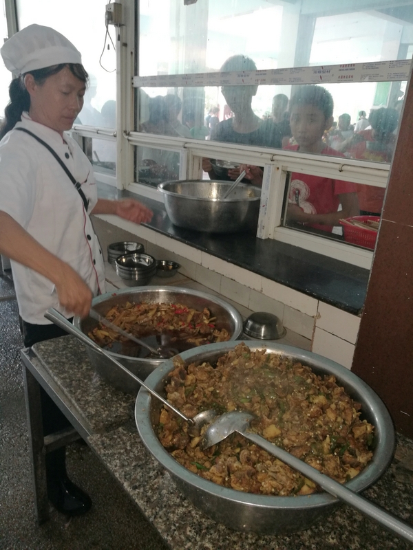食堂食物丰盛,用餐秩序井然有序