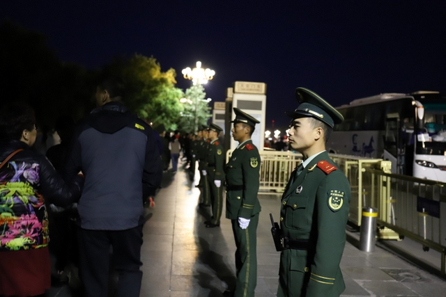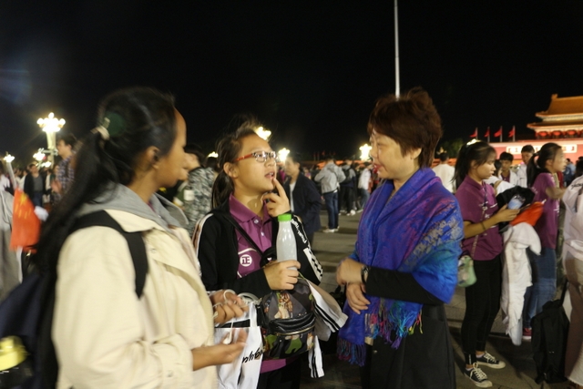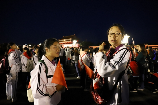 10月1日凌晨4时,为了看国庆升旗仪式,励志行团队的师生们起了个大早,乘地铁赶往天安门广场。