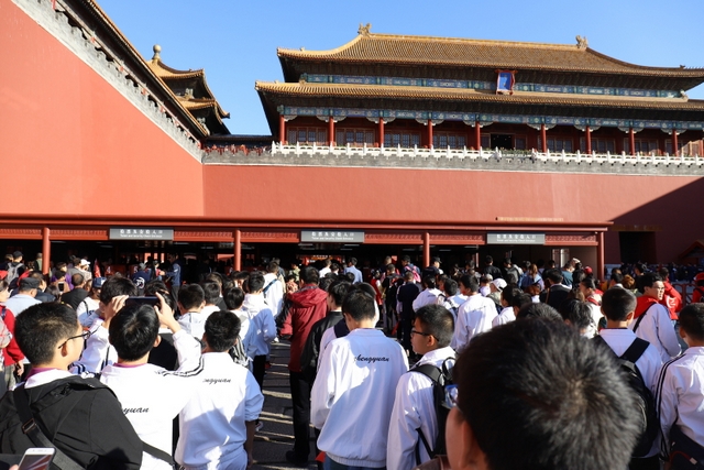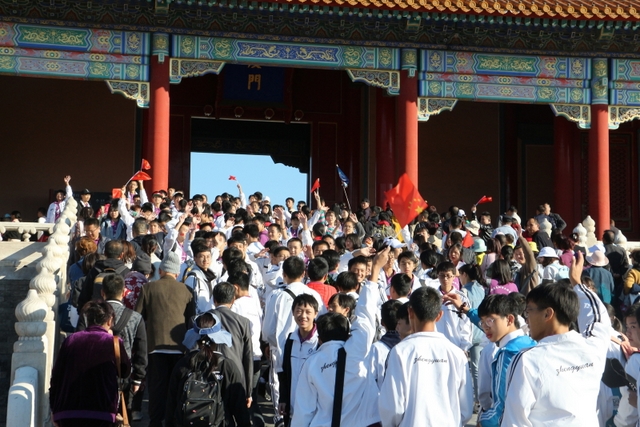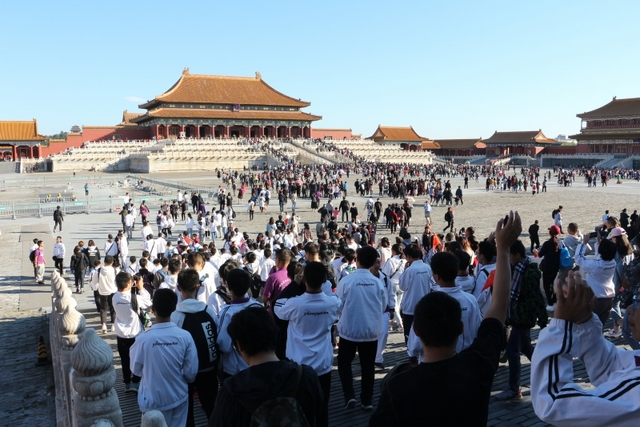 看完升旗仪式,师生们吃完早餐,向故宫进发。