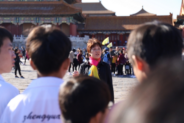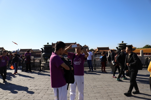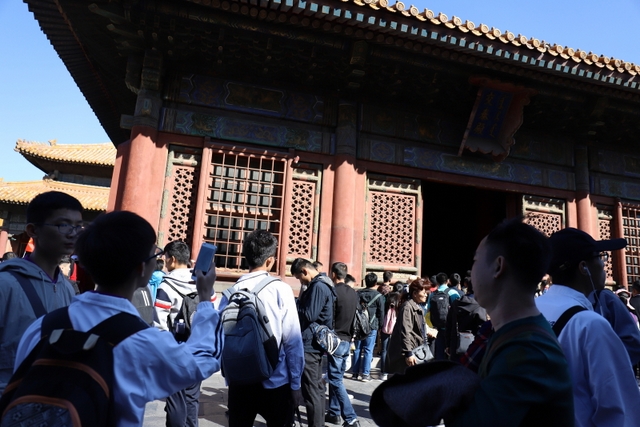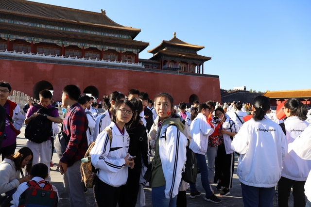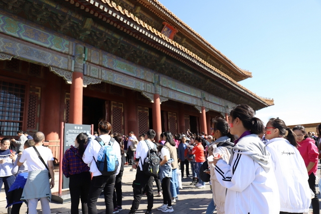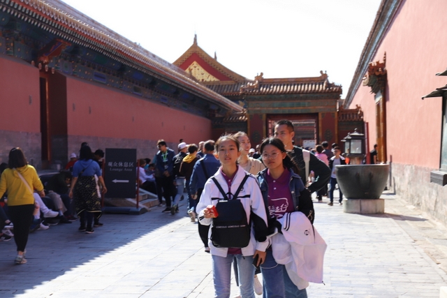 8点,大家来到故宫,随着人流走进大门。映入眼帘的是一栋栋气势恢弘、美伦美奂的建筑,整个建筑金碧辉煌,庄严绚丽。同学来到太和殿前,合影留念。学校财务总监梁晓芬向大家介绍了故宫的历史以及它在世界建筑史上的地位。故宫是中国明清两代的皇家宫殿,旧称为紫禁城,位于北京中轴线的中心,是中国古代宫廷建筑之精华。